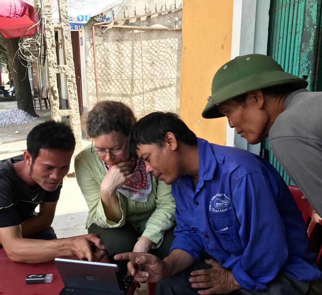 Outside the bus station we found one and the owner spoke pretty good English and she got our ca phe sua da going and I whipped out my iPad. Immediately we were joined at our small table by a group of regulars, one of whom was apparently the Life of the Party (and I don’t mean the Communist one) who peered over my shoulder, tried to fill in the password for me, and tried on my reading glasses. The Montanan in me wanted to clock this asshole. The traveler in me told the Montanan to stand down and laugh with him, and that worked well. Soon we had our route to the bus station worked out, glasses of delicious iced coffee placed sweating on our table, and many curious and friendly people pulling up chairs to listen to the owner talk with us.