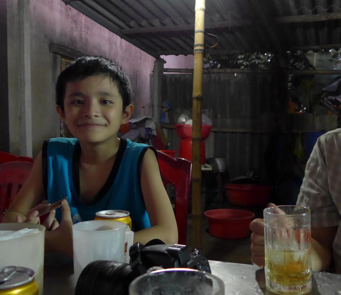 Why yes, we did. But we couldn’t wait an hour because we were starving so we were back in half an hour, and the kid told us what was in each pot, helped serve us, sat at our table and talked with us, and it wasn’t until we were leaving that we discovered that the woman cooking there was not his mother but his best friend’s mother. Duy told us that he had a cousin in Europe and they spoke to each other by phone in English, that is why he spoke so clearly and with such a fantastic vocabulary. Soon a woman across the alley stopped by, she was his English teacher and commented that Duy spoke English very naturally. This was not the first time we had people entreat us to stay in Vietnam and teach English, by the way.