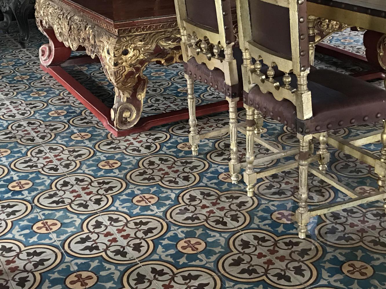 Then one day we got up enough energy (actually, forced ourselves is more like it) to ride our bikes ten miles out of town to other emperor’s tombs. The effort was well worth it because the interior of Khai Dinh’s tomb was decorated to the max with colorful tile designs. The colors were vibrant and joyful, the ceiling painting seemed ultra modern, abstract, fantastic. We loved the inside of the tomb building so much it was hard to leave and get on our bikes to go a little further to visit Ming Mang’s tomb.