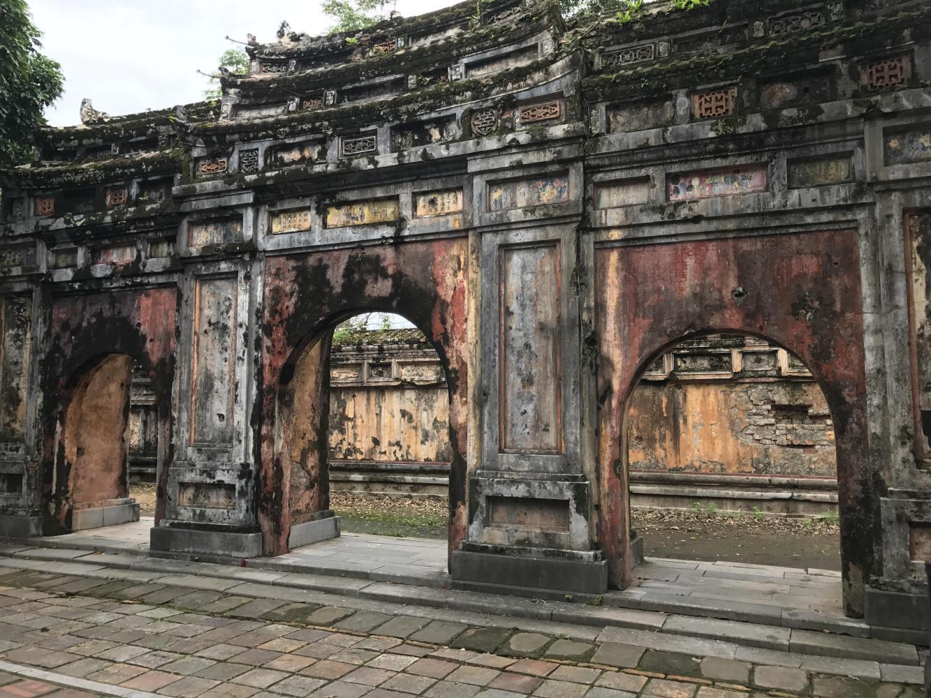 The biggest attraction in Hue, besides it’s regional cuisine, is the old Imperial Citadel which we walked about for most of a day in the stinking heat. The great majority of the buildings had been wiped off the face of the earth by the war and the few that survive made me hate war more than ever. I’m no fan of imperial anything but since it did in fact exist, it is nice to see the art and architecture such wealth produced in the past. It’s history and I’m also not a fan of wiping out history.