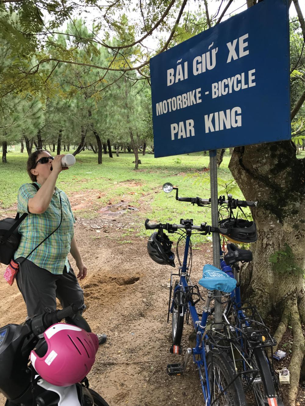 We had been talking about spending some time in Hue relaxing, so, that’s exactly what we did. The spider bite or whatever is itching Andrea's hand is getting more pronounced every day so we thought we should rest. We ate the famous regional foods, explored the bustling city, became real tourists, ate more fun foods and generally found the city a joy to visit. We did have to cope with 98% humidity amidst 90+ degrees. The staff at Valentine Hotel were some of the best ever. One of them even took on the job of knitting back together the wire for my bike computer which had snapped because of rough handling by the bus guys. They situated the bikes on top of the bus ignoring my directions on which way to lay them down. They did not want to be told a thing and kept directing me to get on the bus and they would take care of everything. My last glance was of my front wheel swinging wildly all the way around.