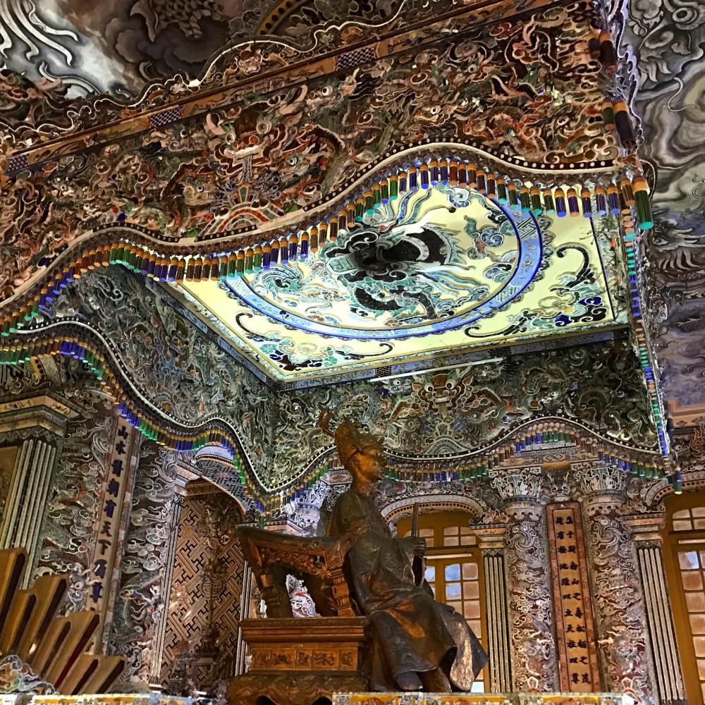 Basically I just love old wood Asian buildings. The Thai Hoa Palace has 80 old-growth ironwood pillars; hard as steel. Actually I was surprised how much survived both the French and American wars. The gold encrusted throne for instance, and even the emperor’s writing utensils!