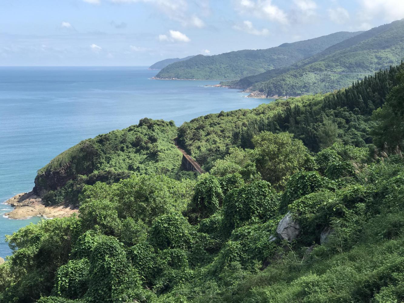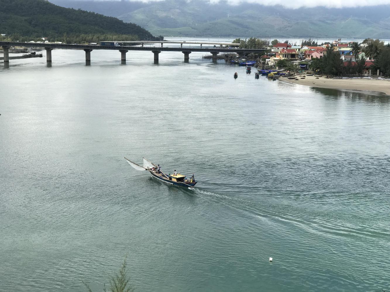 On the southern stretch of Lang Co there are more older and established hotels. We breezed past them because the clouds were clearing out. We could see sunshine out to sea and that was good news because that’s where the weather would be coming from if it was going to be rain. We did not want to do our biggest elevation gain and loss ever on wet roads.