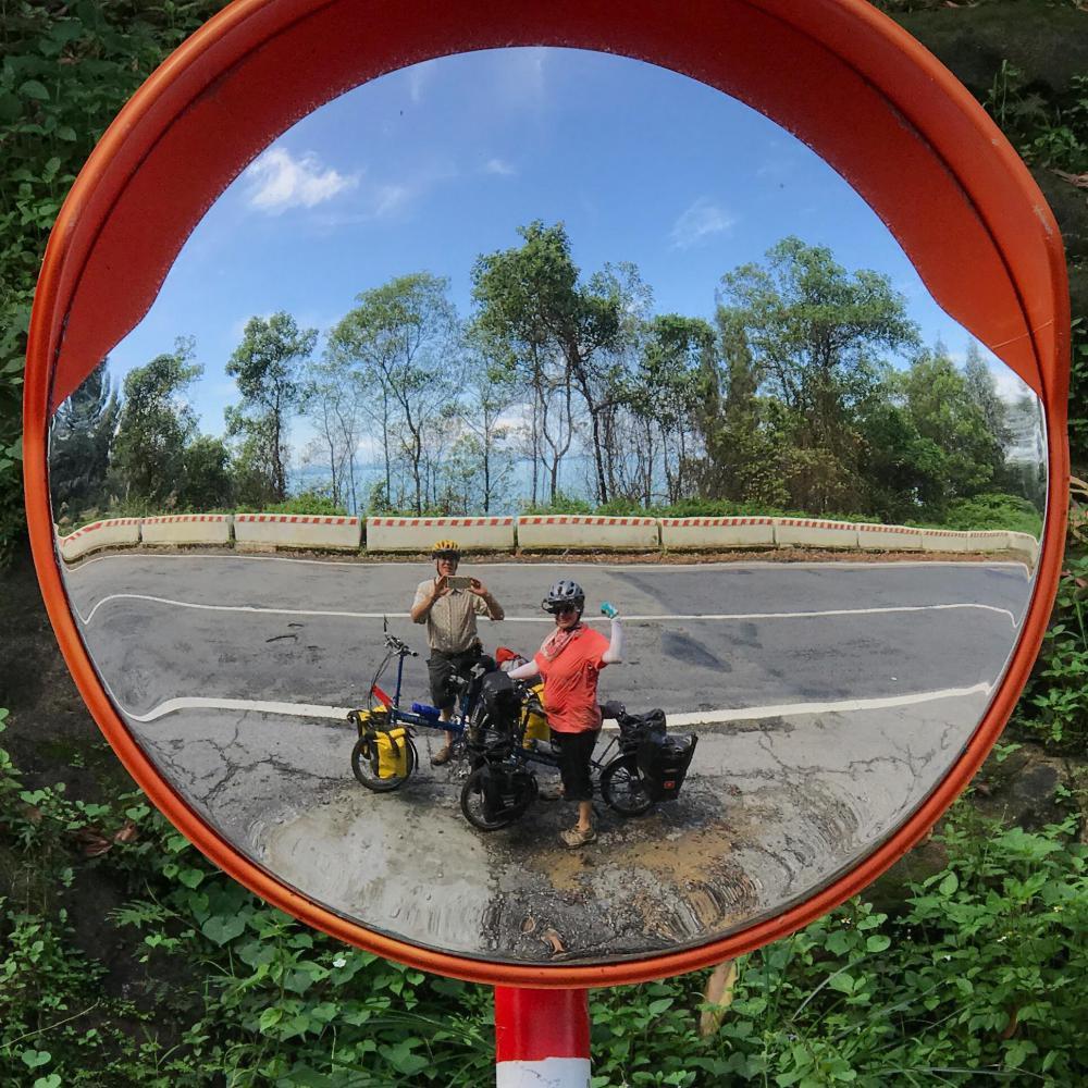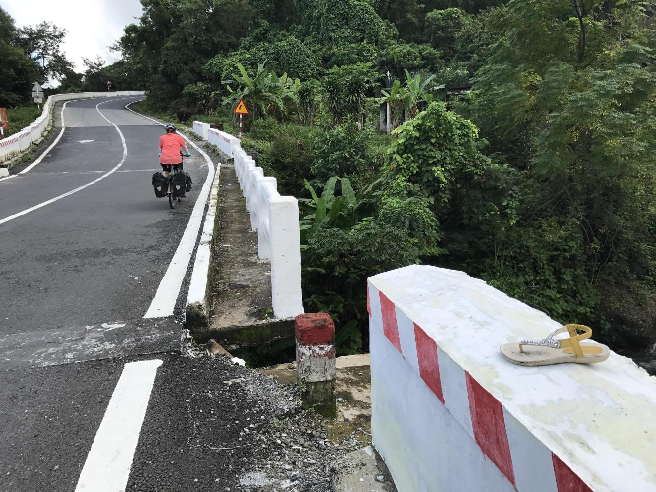 There are hundreds or thousands of cyclists who have written about climbs much longer, higher, steeper than Hai Van Pass. Our first cycle tour two years ago was fairly flat. I wasn’t going to do my first ever bike tour at age 61 and immediately fill it with impossible climbs. So, this was a good test for us. We also are carrying way more weight than we will be because we came prepared for cold wet weather up north. Plus, we are still carrying a lot of Cliff Bars, slowly rationing them out to ourselves as treats every now and then when things don’t go so well or when we don’t find dinner. I know my bags will be ten pounds less at the end of our trip. I mean, just think, the Q-Tips, deodorant and vitamins all gone.