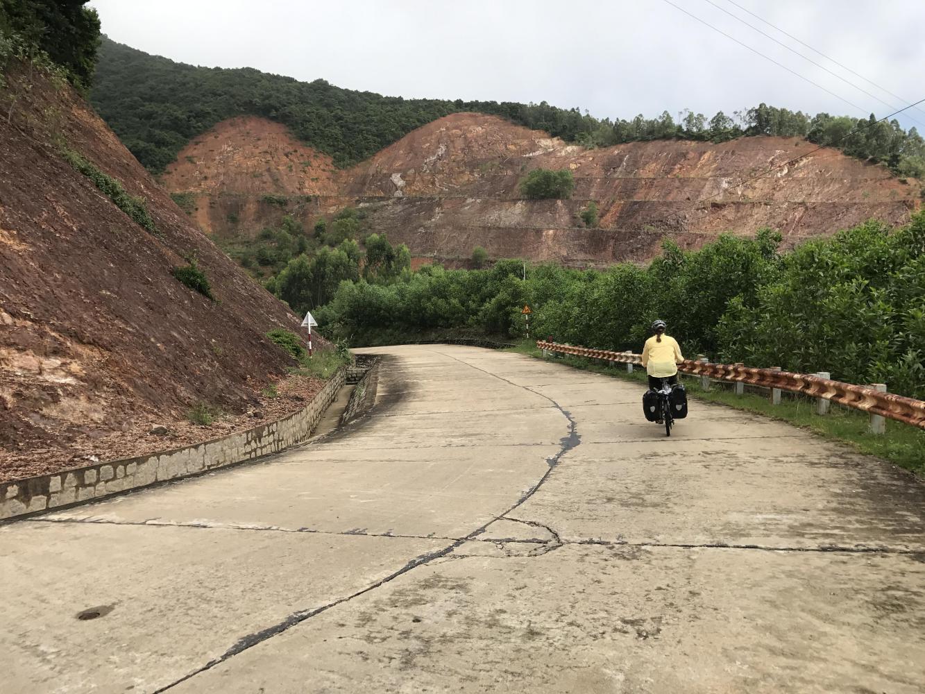 It was my favorite stretch of beach in Vietnam so far because it felt so natural. It had to be savored quickly however because the road then went straight up again but only about 250 feet of gain. Coming down the other side was even more treacherous because then we knew how treacherous treacherous actually is. I think it was steeper coming down than the last one as well and we really gave the brakes a workout. We were cursing the road builders.