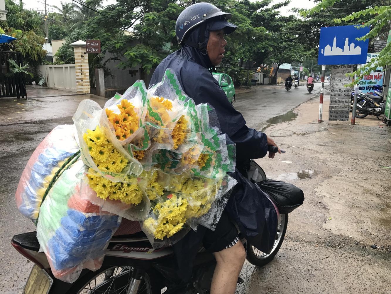 We woke up in the Hung Nguyen guesthouse to rain pouring down like no tomorrow. One of the gravest disappointments I’d had the day before when we got settled into our beautiful spacious room was that there was no hot water, which was no fun since I was somewhat chilled after being wet all day. This was the first time in Vietnam there was no hot water, they had a solar heating tank on the roof which is sufficient for most of the year but not when it’s been gray and wet for weeks. The guesthouse manager drew a picture of the sun and made a “whatcha gonna do?” gesture, and he was right. Shiver, I guess.