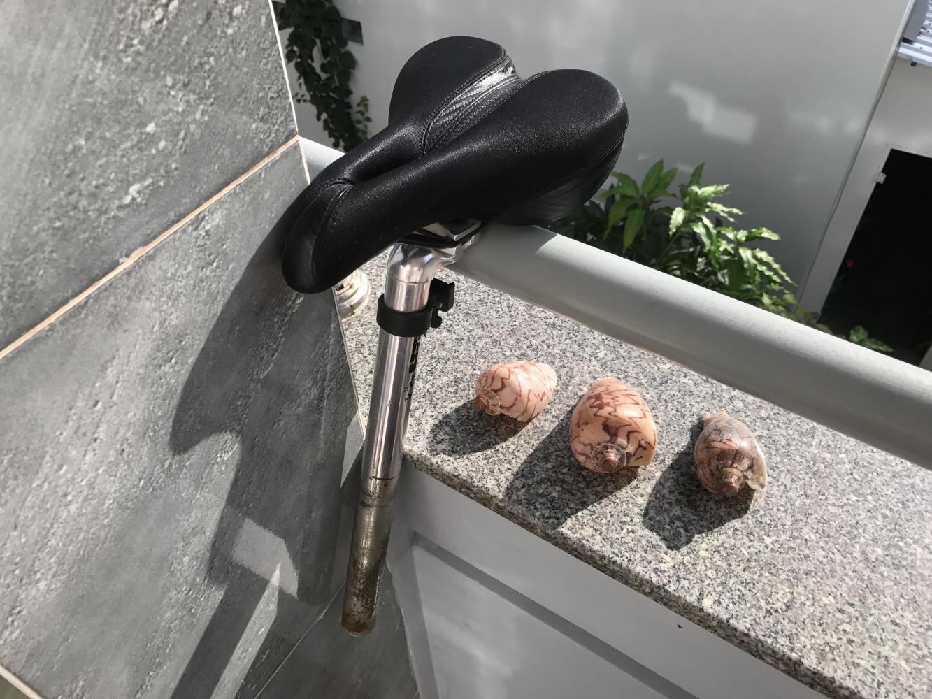 The next day we had the odd apparition of sunlight making spots on the curtains. Outside was a wall of pure humidity and heat, but a little breeze made me throw caution to the winds and put my sandals out on the balcony to dry. Then we had the mad idea to clean our bikes of accumulated sand, dirt, filth, road tar, and chain grease. They have rust on places I didn’t even know could get rusty, such as quick-release levers. This trip has been hell on the bikes and they are showing it. It doesn’t help that we simply have not been allowed to park them in our rooms at any point in Vietnam and give them the old butt wand cleanoff they deserve.