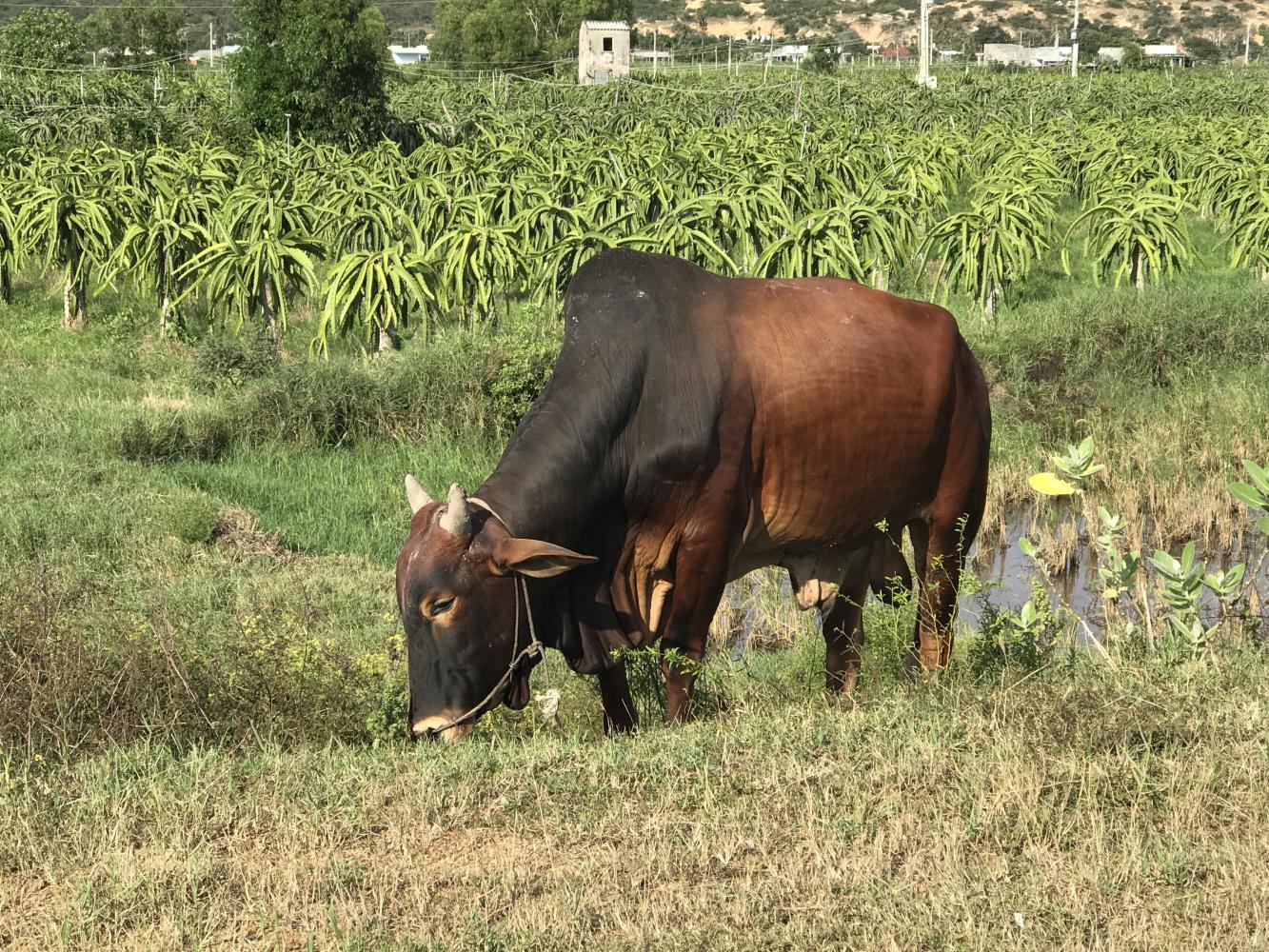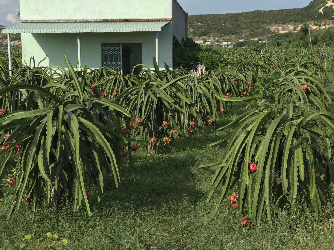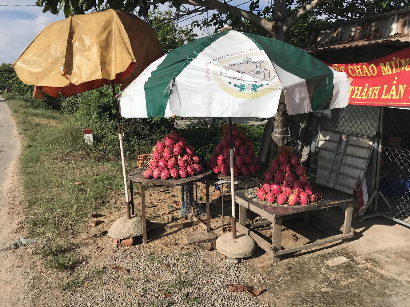 We asked at two other places but ended up with nothing so we kept riding. We rode through numerous dragon fruit farms and piles of dragon fruit for sale by the side of the road. We had never actually seen dragon fruit on the plant but there were many. Dragon fruit is such an interesting plant, it must be a succulent.
