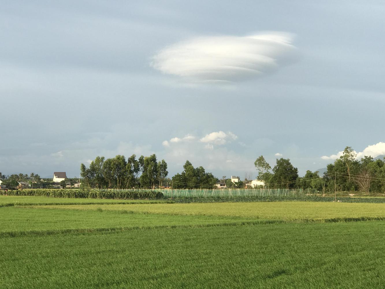 Then there was a swinging bridge, rice fields, a man wheeling dried eels, another place we asked about but was full, more dragon fruit, a lenticular cloud and then a town, La Gi which was on a terrible road and we were there at rush hour. It was a dusty mess and we took the first Nha Nghi we saw right on that dusty street.