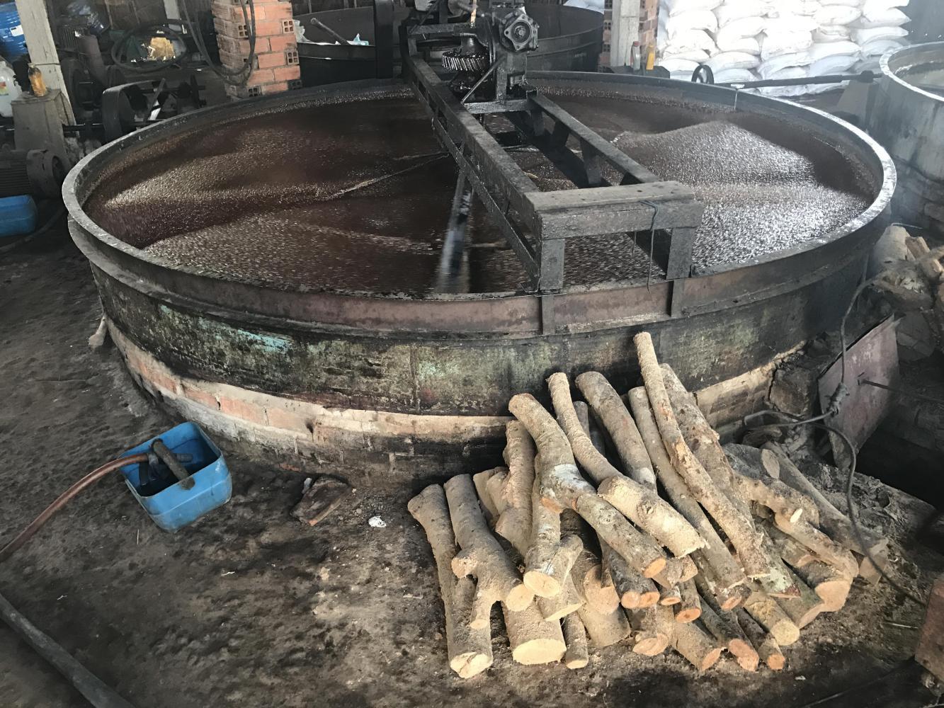 Our second stop was at a sugar producing plant. Big vats of heated thick brown liquid was stirred automatically by large motor driven paddles. A wood fire was underneath each vat. At this point there is a large gap in my understanding of why there was so much sugar being produced on the delta. I don’t believe sugar is made from coconut meat, of which there was tons. Palm sugar is made from sap from the flower bud up on top of the tree. We never saw even one tree being tapped. All we saw were coconuts. Of course we were only seeing the edges of the waterways and not what must be vast coconut palm plantations on the interior where they might be tapping the trees.