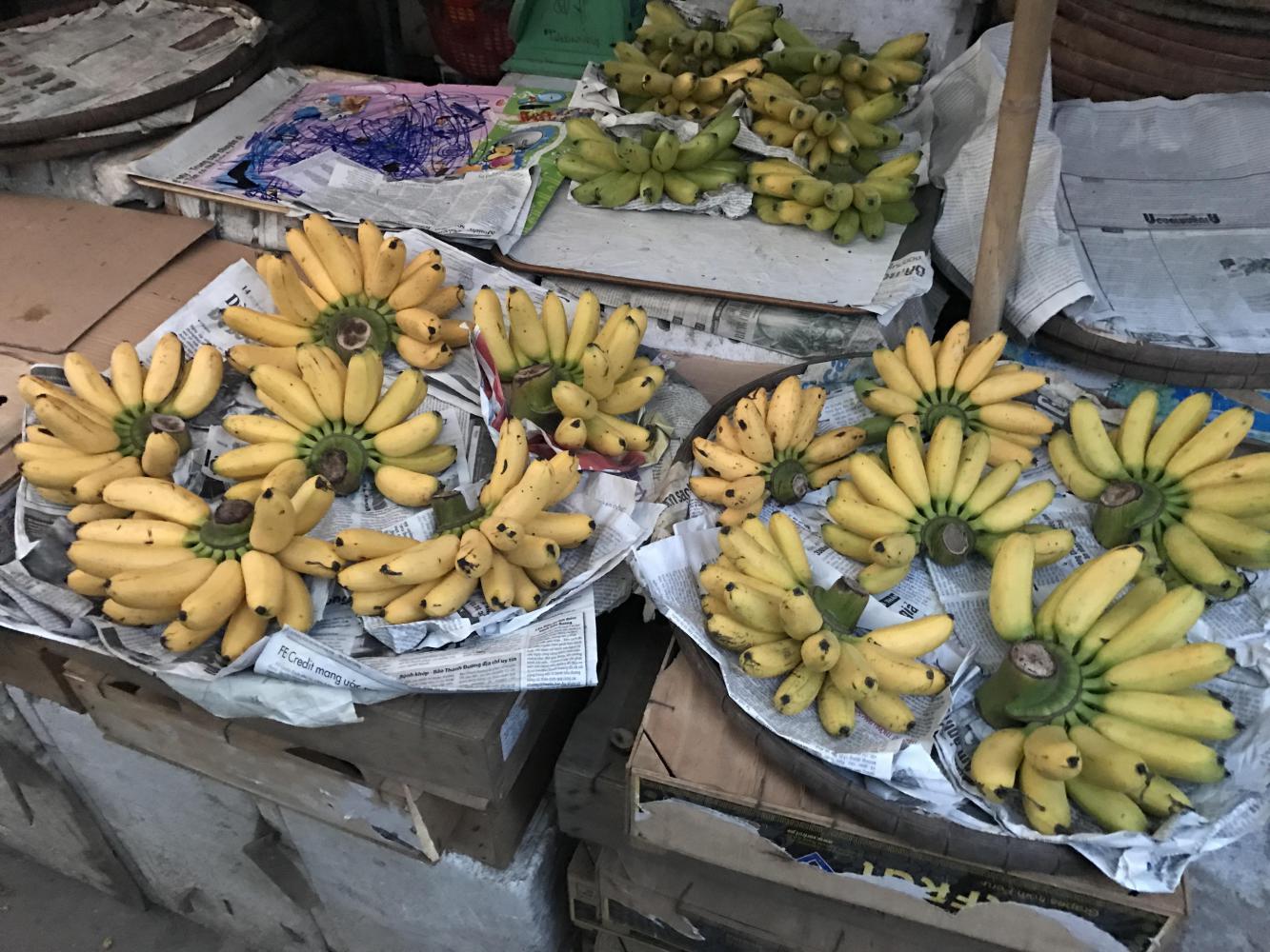 The elevator, and let me be eternally grateful for elevators after the stairway hell in Hanoi, was chrome plated and Bruce had lots of fun photographing our funhouse photos in it. There was a tiny balcony that dried things like shoes and clothing in minutes, still a novelty after weeks of rain. There was a tiny desk and a tiny table that promptly disappeared under helmets and bunches of tiny bananas and other junk.
