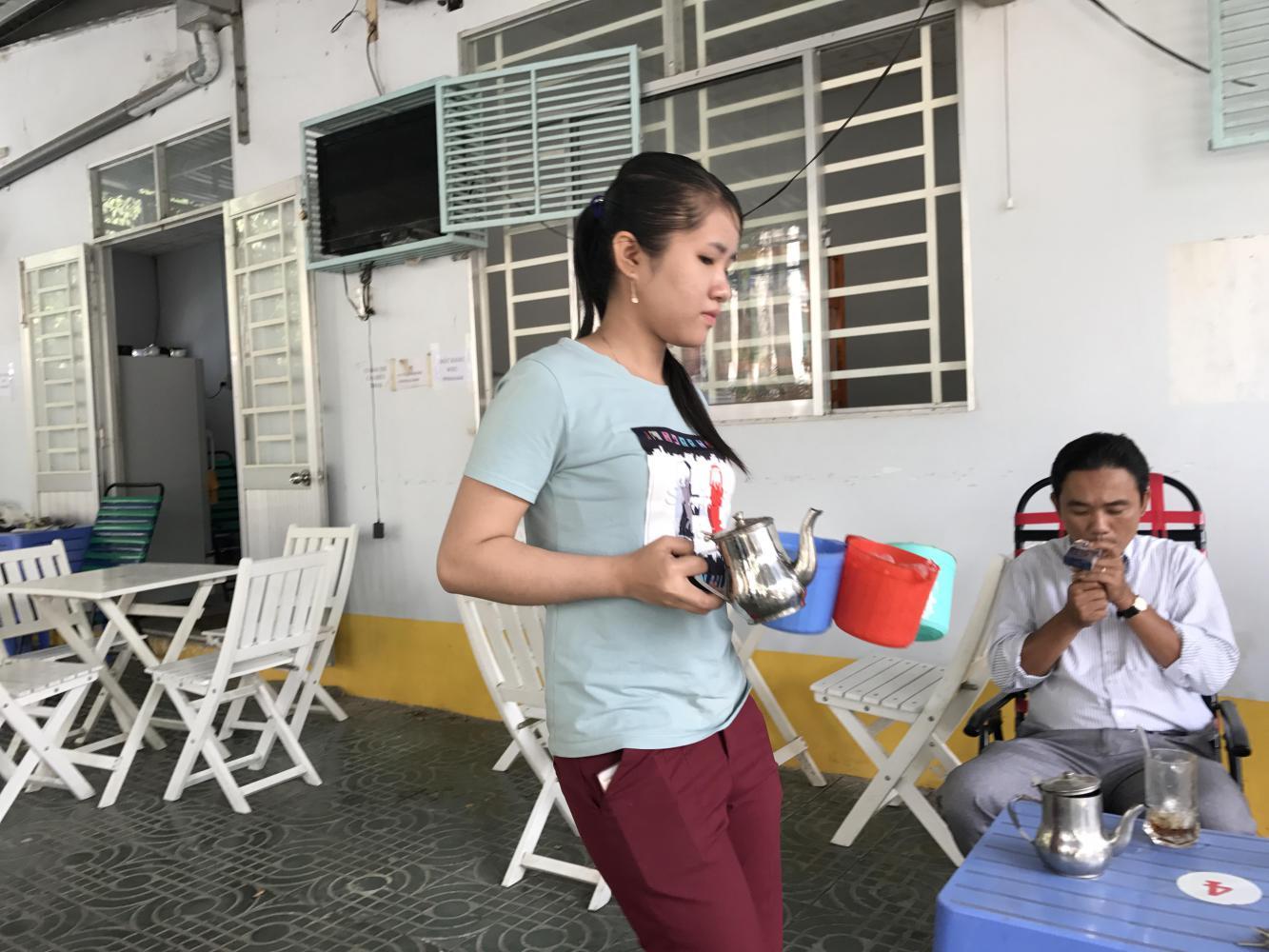 Tra Vinh has a lot of large trees shading the streets and reminds us a little of Siem Reap, Cambodia, but without the shoals of western tourists. In fact the only foreigners we saw in two days were the Dutch folks who rode on the cargo boat with us and we didn’t flag them down because it seemed we had exhausted any conversational topics already. We found a pleasant coffee shop to hang in. If you return to the same coffee shop suddenly you are a fixture there and they show you where the toilet is.
