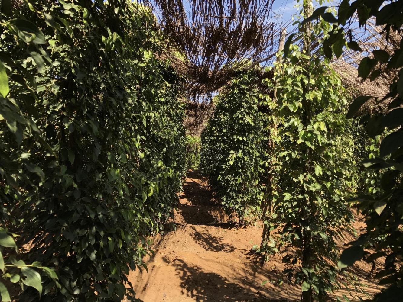 We were assigned a guide, a fellow traveler (Brazilian) who took three weeks of her vacation to volunteer at the pepper farm. She was an excellent guide answering all of our questions. We also tried a green pepper corn (unripe) off one of the vines. It woke my mouth up for an additional hour! It was interesting to find out that pepper is a vine, for one thing, but that the vine is very touchy about the amount of sunlight it gets as well as being picky about the type of soil it grows in. The entire farm was therefore shaded as the vines are jungle plants. They want their roots to be in loose soil so we were not allowed to walk between the rows. Compost is placed in a hole between plants. The pepper is picked only once a year by hand, again, being careful not to compact the soil around the roots in the process.