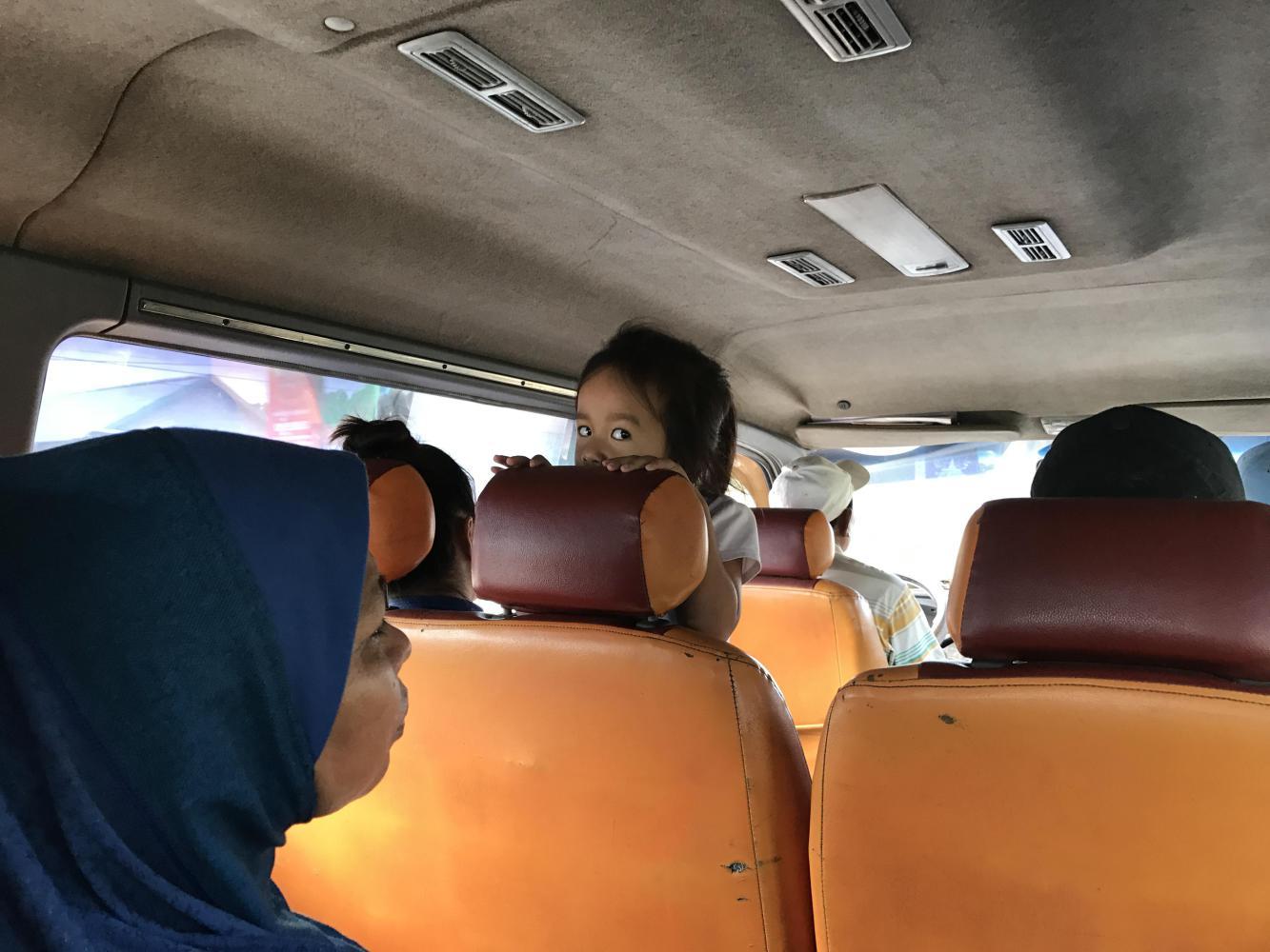 Back in the van after lunch a little girl and I resumed our game of hide and seek with our phones trying to take photos of each other. She had a great sense of humor as I stalked her with my phone/camera. It was an attempt to distract myself from the irritating noisy woman’s voice (she sat right in front of me), and the possibility of our bikes and bags taking the grand leap out the back as well as the very real possibility of all thirteen of us dying in a head-on. The driver wouldn’t be number fourteen because he would survive.