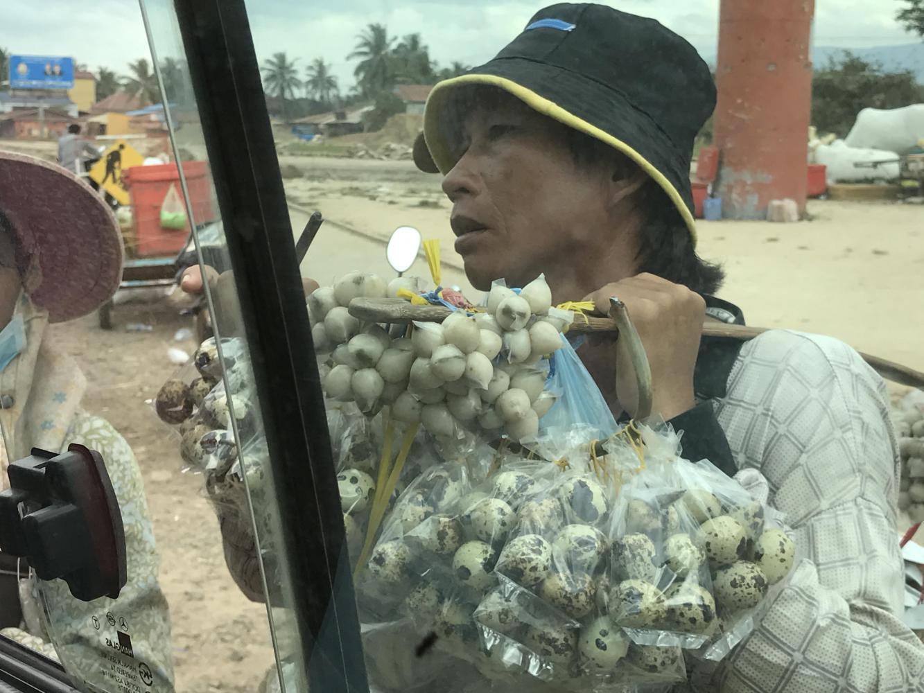 We had studied the maps carefully as well as read cycling blogs from those who had ridden the only road between Kampot and Koh Kong, the Cambodian border town. There were few towns, a lot of hills, questionable road conditions and vast jungle on either side. Plus, it was very hot and humid. We could have done it but it didn’t seem like a very good use of our time and energy. We are not the type of cyclists who are obsessed with riding every kilometer of a route. There are interesting things that happen on other forms of transport as well. In the end we figured we would save four or five days if we simply took a van.