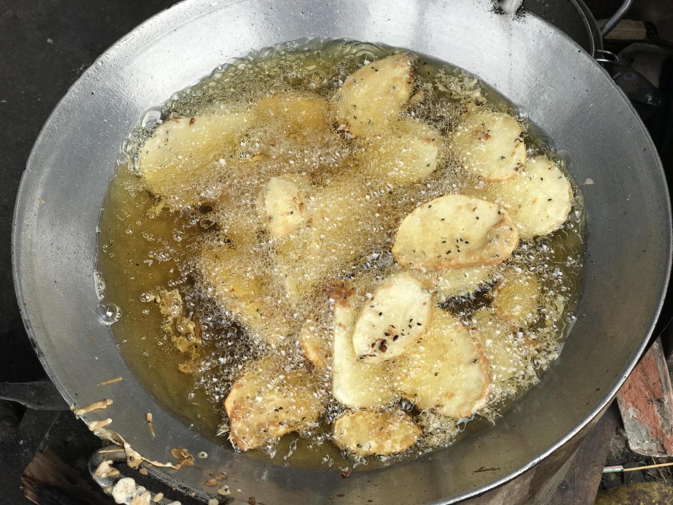 We stopped for lunch but the only person who ate was our driver. By the way he passionately downed his lunch it seemed he maybe hadn’t had breakfast. I bought a bag of taro root fried tempura style. At least we think it was taro root. It wasn’t potato as the woman had told me.