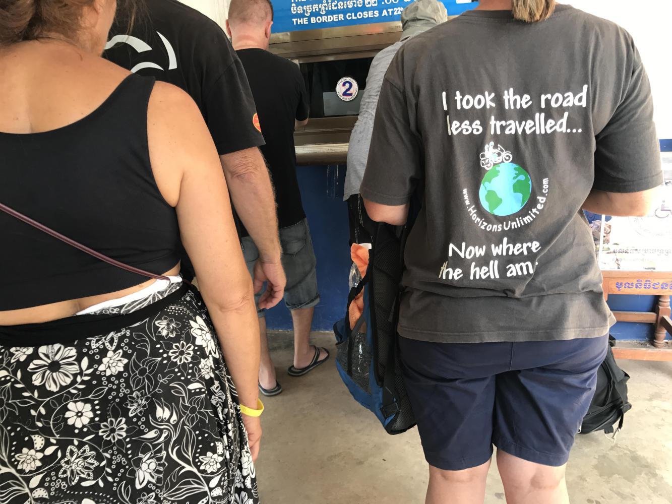 It was 6.5 miles to the border. We were not feeling bad about what was about to be the shortest stay in a country in S.E. Asia for us ever. At Cambodian Immigration there was a long line of tourists. While standing there we counseled a very young, very green, Swiss guy to not pay any attention to the officials trying to extort $150 from him for a visa to Cambodia. We assured him the price for a visa was $30 but there would be a $5 corruption fee that he couldn’t get out of paying. But for them to try to get $150 was pretty laughable. He went back in to fight it out and he, of course, eventually emerged with a ‘thumbs up’ to us. No, it wasn’t going to be terribly sad to leave Cambodia, one of the most corrupt countries on earth. Four trips there in the last 16 years was enough for awhile.