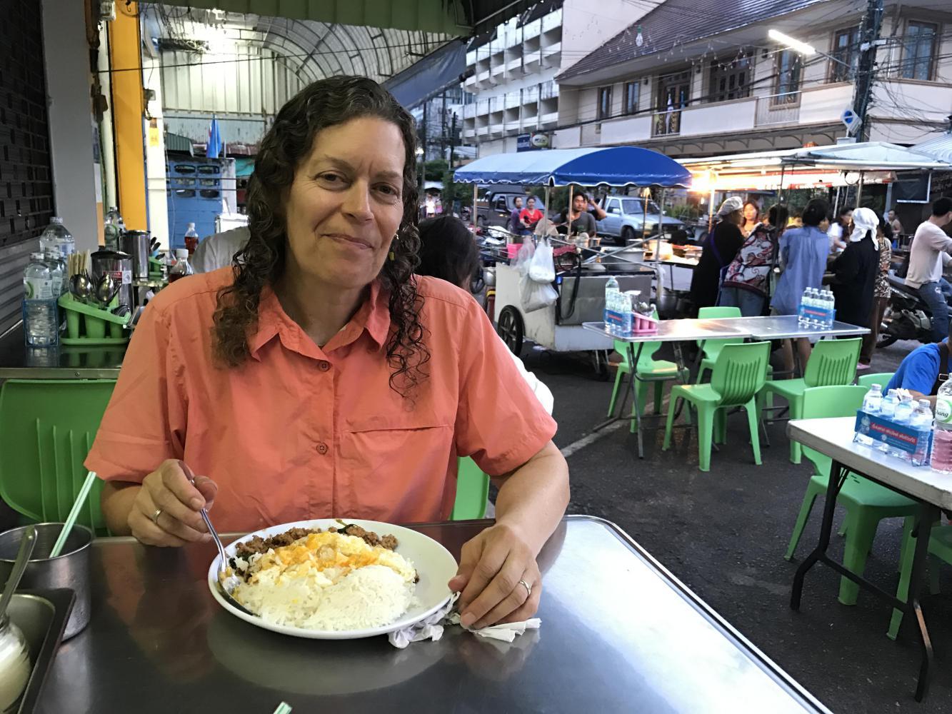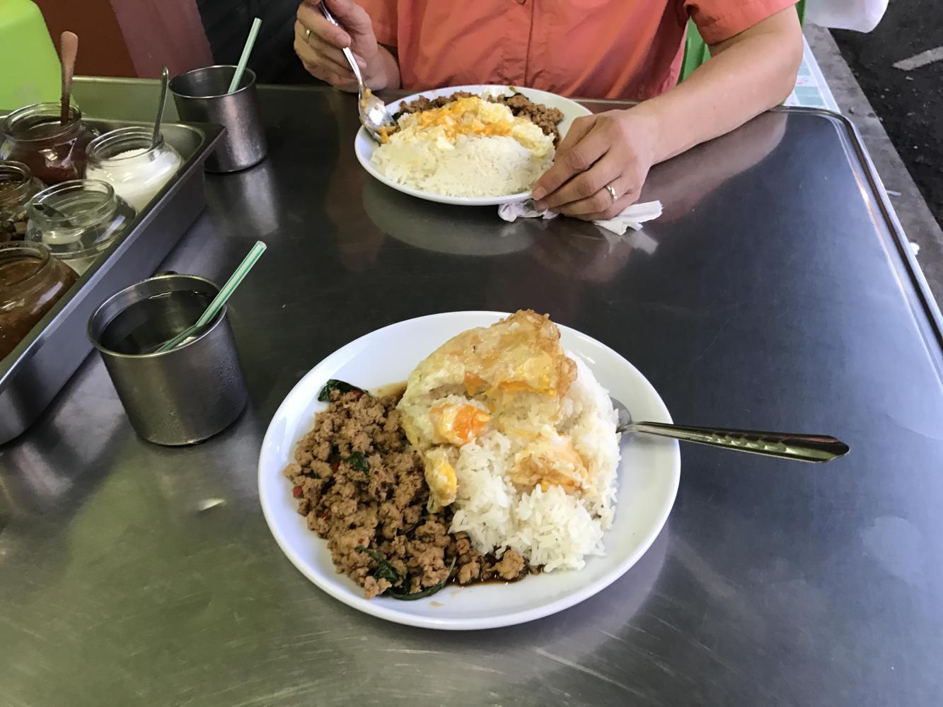 Midway through our meal the national anthem (written by the recently deceased Thai King) played on loudspeakers over the market. Something happened that I hadn’t experienced in many years. I had told Andrea about it before but I never knew if she had ever believed me. As soon as the anthem began all motorbikes stopped in place, cars stopped, everyone, and I mean everyone, stood at attention. We stopped eating and stood with them. It was the Day the Earth Stood Still all over again.