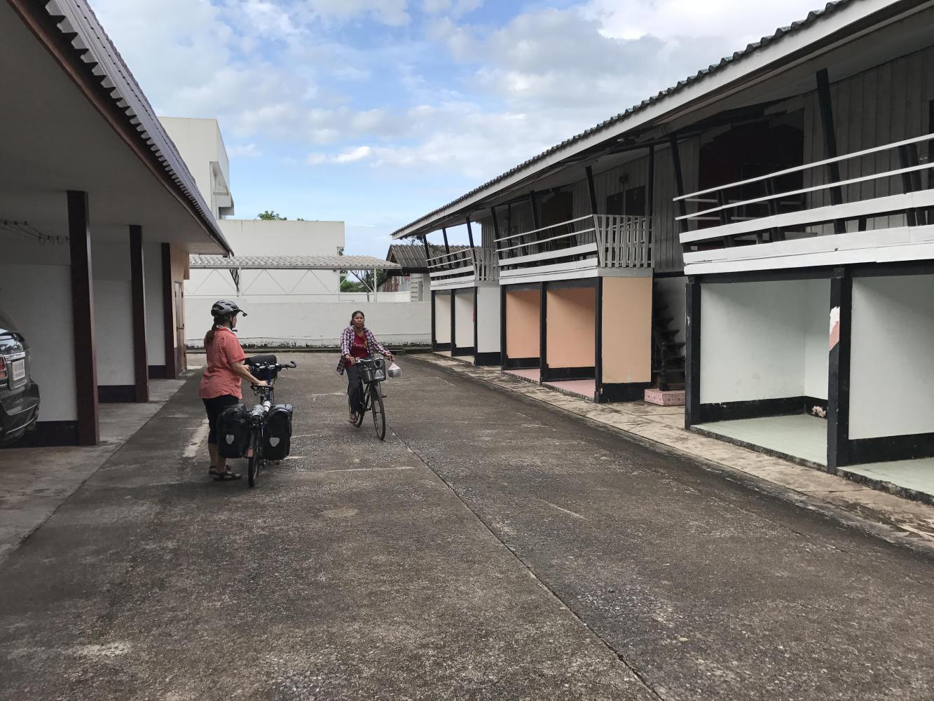 We flew down the road even though it was quite hilly the 11 miles to Klong Yai, the first town inside Thailand. We found a hotel that had seen better days, like maybe in the 1970’s. We just needed a place to sleep and food. It was right downtown and as soon as we had killed a few mosquitoes in our dank room we ventured to the central market. We found a restaurant there that gave us huge piles of great tasting food. It was as if they knew we needed double portions!