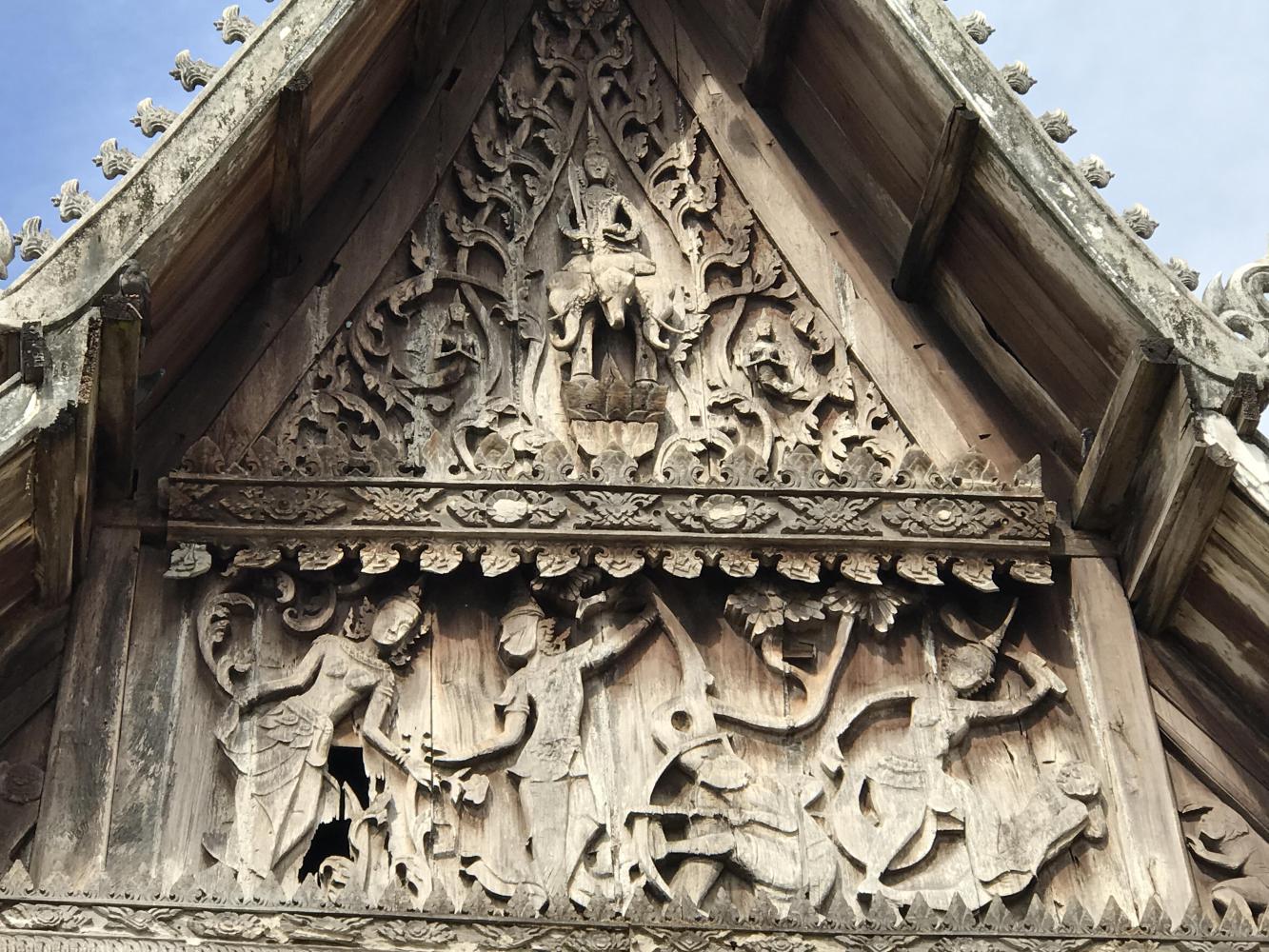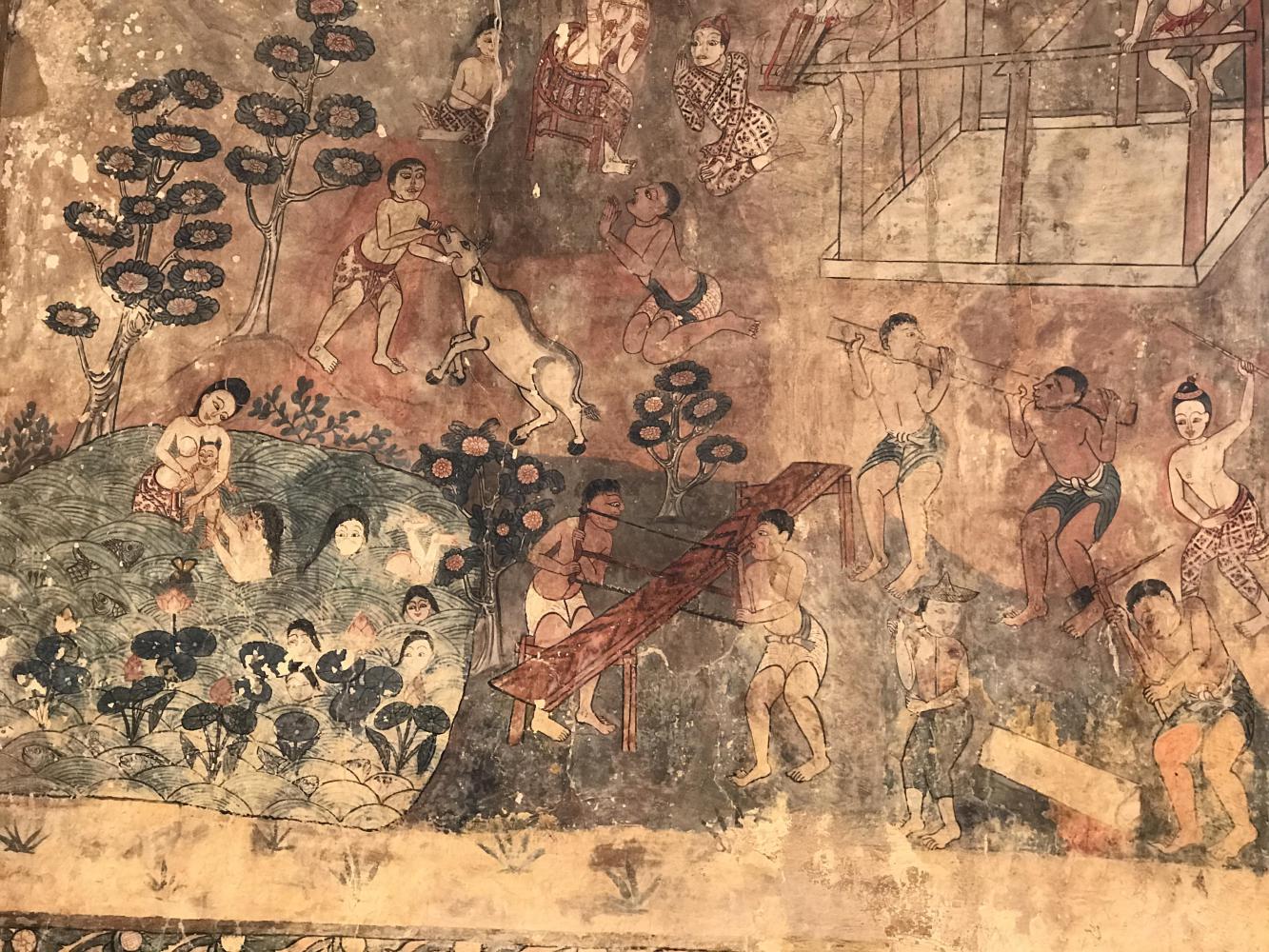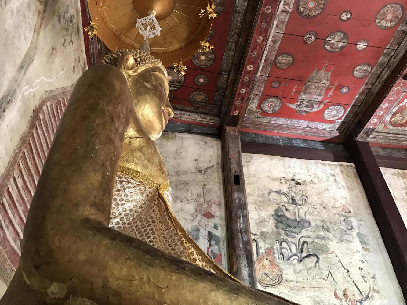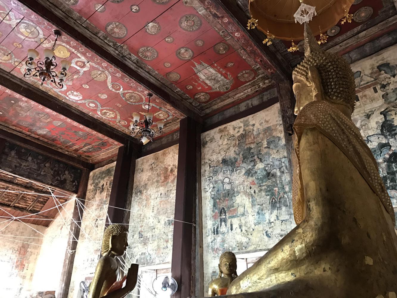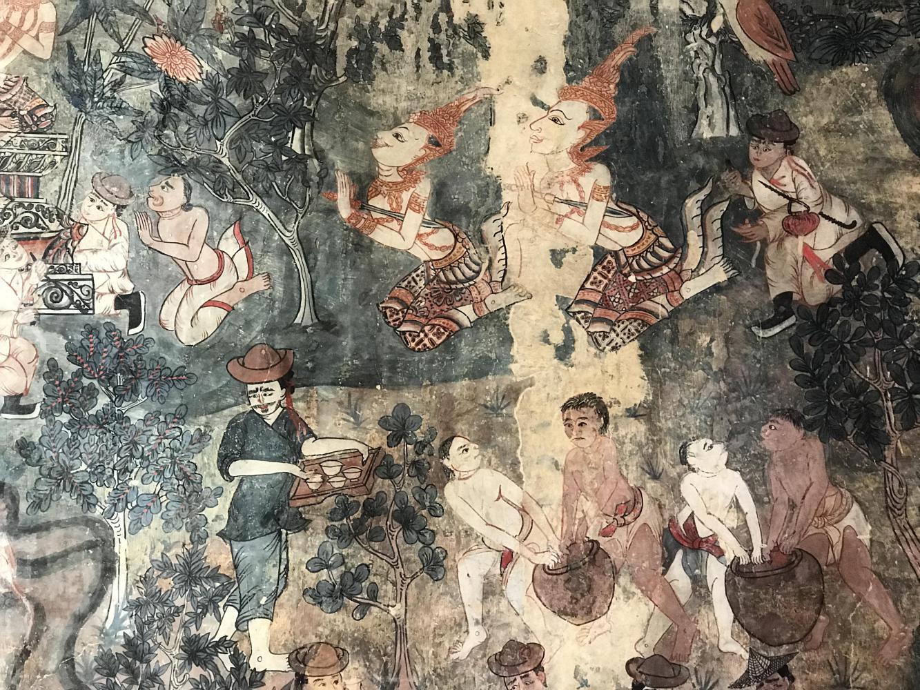 To stumble upon an old temple that is not in any books I’ve ever seen is akin to the best birthday present ever. I’m completely content gazing at the brush strokes someone made who knows how long ago. In my opinion there was better talent, better artistry back then. I don’t care much for the modern refurbishing the Thais have done to 95% of their temples but to find a little gem out in the country just makes me wish my professor Mac Gimse was with me. I guess in a way he still is. As long as he comes to mind whenever I have these experiences he is there and I am grateful to have had him teach and inspire me long ago.