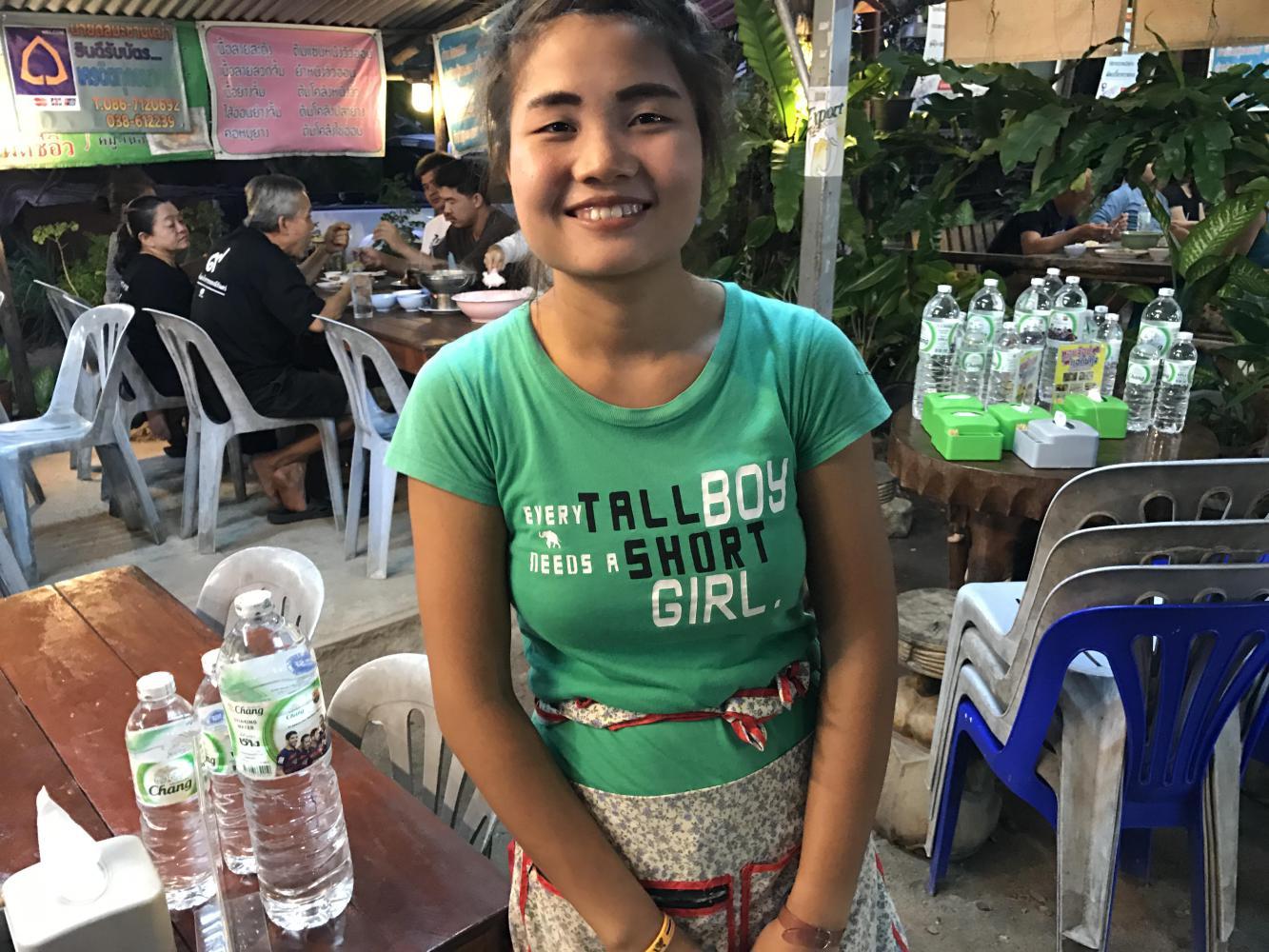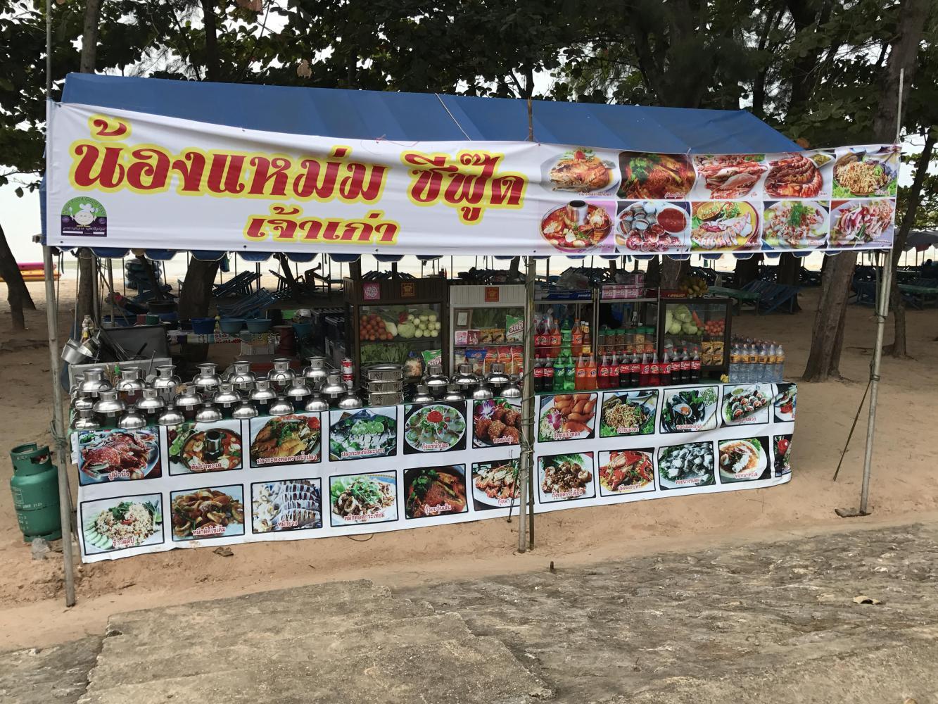 Rayong isn’t really a tourist hub, it turns out, so we had to do a little searching for food, but found a real Thai place, where the ten-page menu is in Thai and the one-page afterthought menu is in English. There was one copy of that menu and they had to dig through the pile to find it. It was a cute place, kind of garden-like with many lively young staff darting here and there and pushing each other forward to take care of the foreigners. Once they found out we knew a tiny bit of Thai everybody calmed down and a couple of the guys found time to stand and calmly watch us eat. A little disconcerting but then, you know you’re really somewhere when that happens.