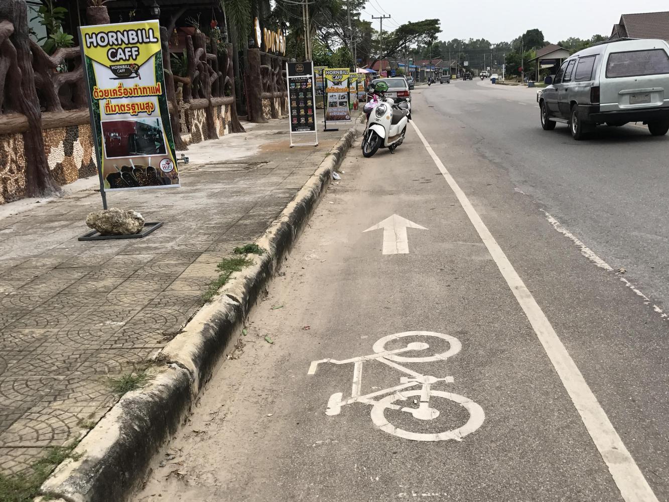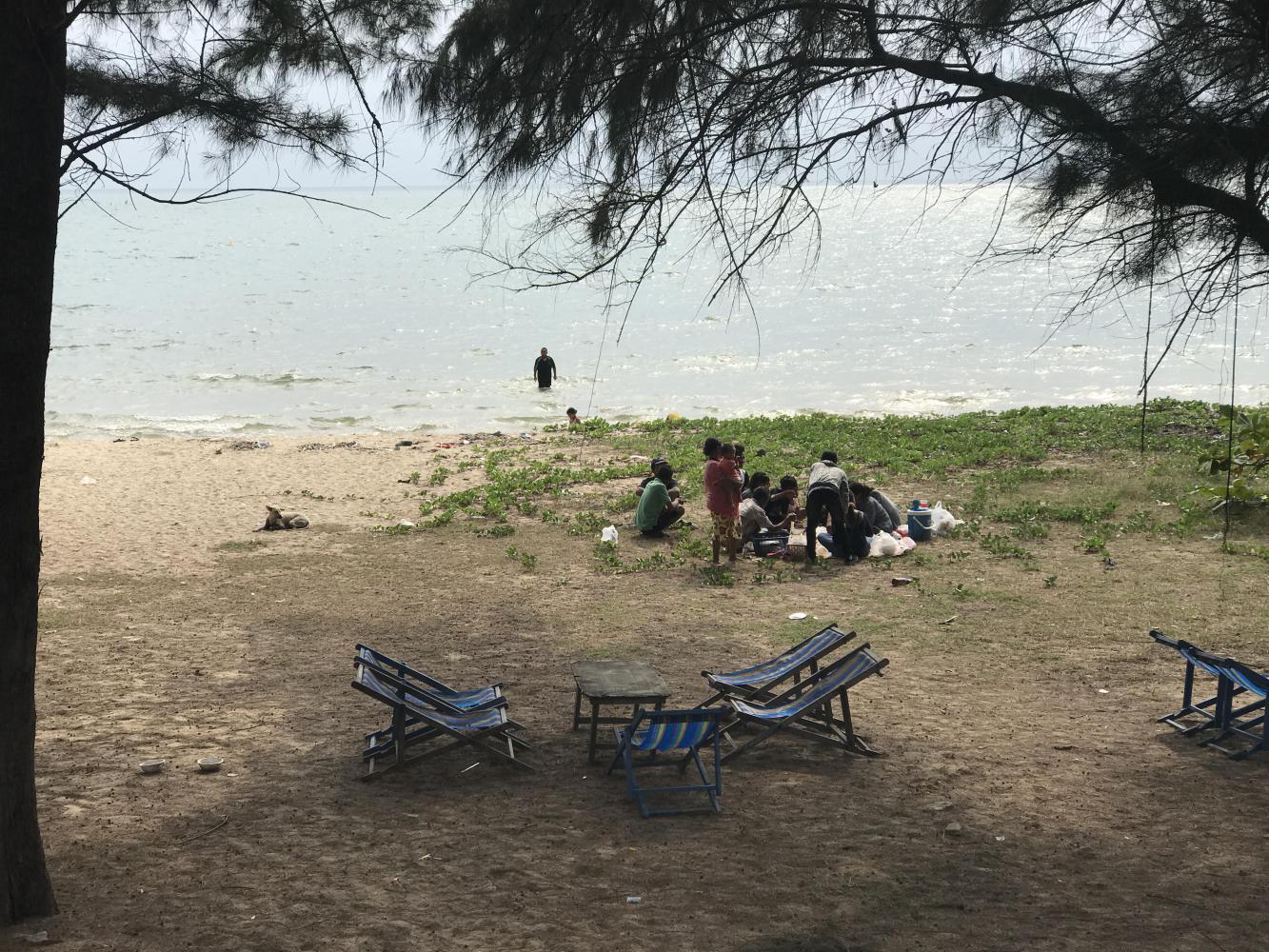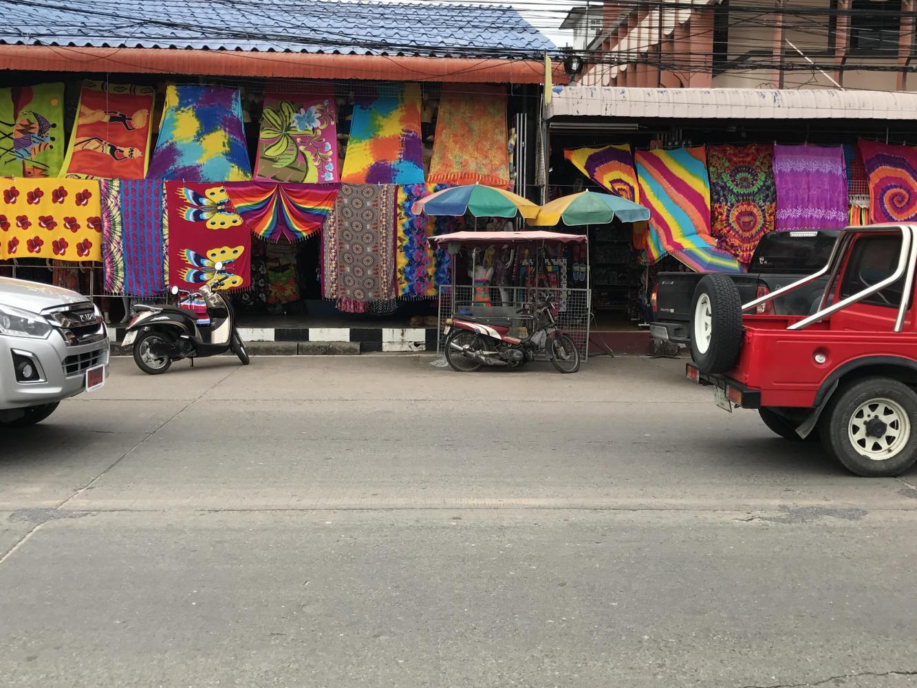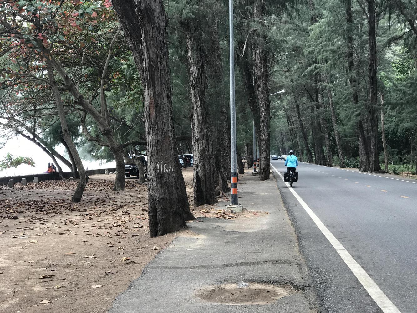 At least most of this route would be along the beach, but it was the weekend of National Children’s Day so even though the weather was cloudy families were flocking to the beach in droves. We passed through several beach communities and as we got closer and closer to Rayong they were more and more crowded. Somebody had suggested we might enjoy Phe, because there were “more activities” there. Phe was a nightmare of minibuses and scads of foreign tourists either boarding boats to the islands or returning with their sunburns and rolling suitcases. Yeah, not our thing.