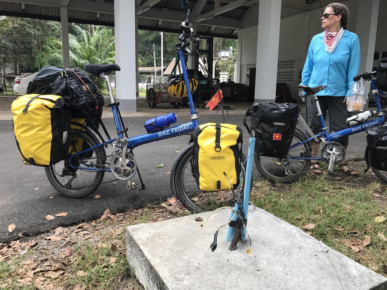 We looked at what we needed to do to get into the cooler and drier north of Thailand, and gritted our teeth and set upon our plan. We needed to get to Bangkok. Cycling north through industrial suburbs looked boring and hot, and life seemed too short for that. So step one, leave our little cabin and head to Rayong.