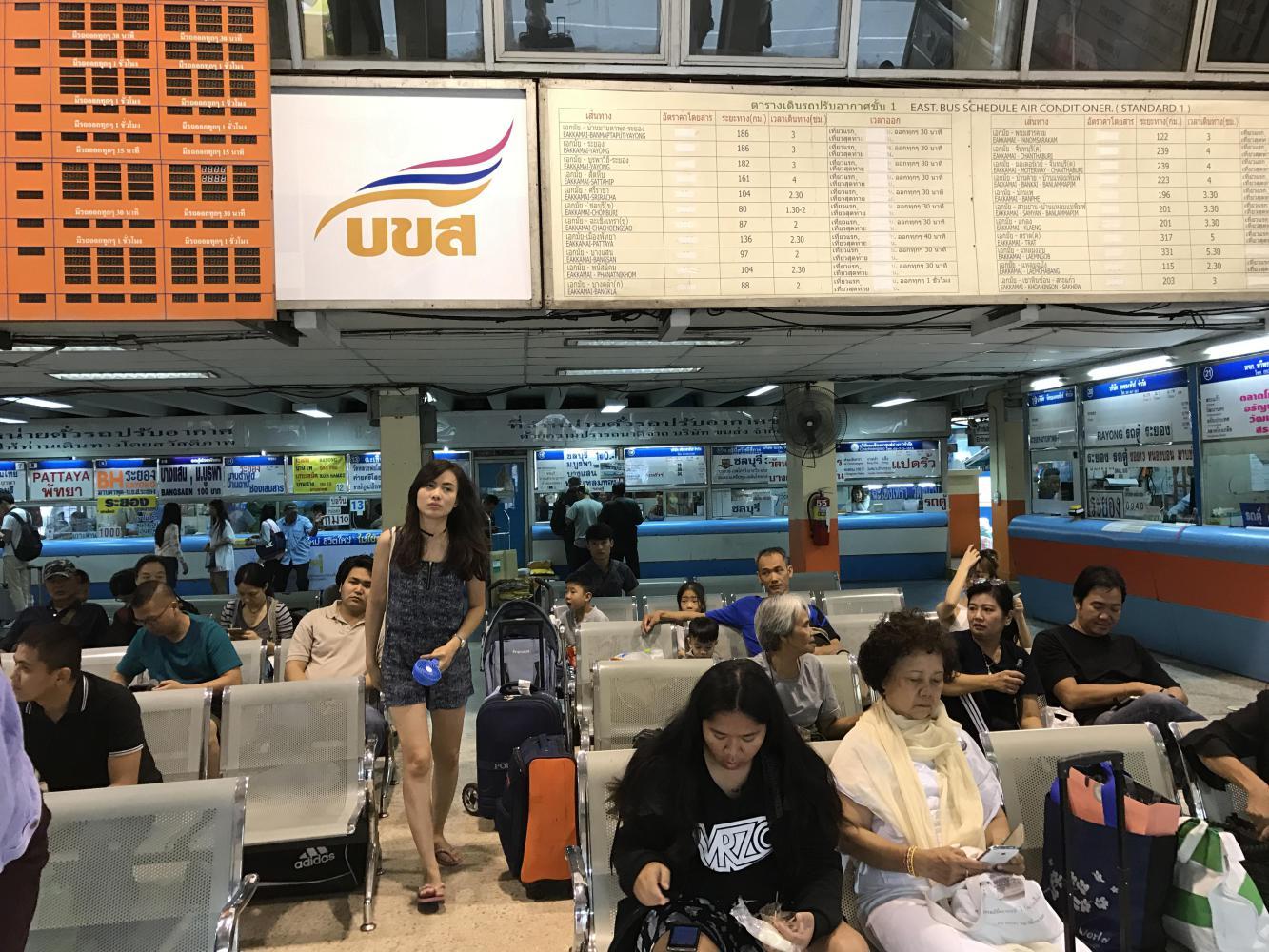 We have used Mo Chit before but it had greatly expanded since the last time eight years ago. Because it is near the legendary Chatujak Market, everybody and his dog has turned into a selling machine so instead of just entering a parking lot full of buses like a normal bus station we had to go through a tunnel of selling, flip-flops, clothing, souvenirs, all kinds of crap.