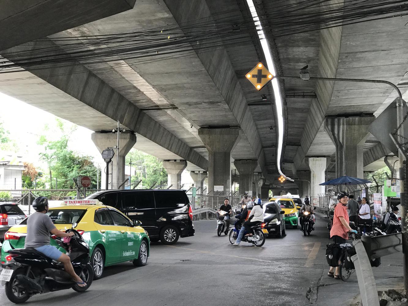 The problem was getting across the heart of Bangkok to Mo Chit, the bus station for northern destinations. Ten miles across Bangkok. Our hearts sank at the prospect. The colorful taxis in Bangkok were not going to be able to fit us and our bikes, and would be expensive and slow. Not an option.