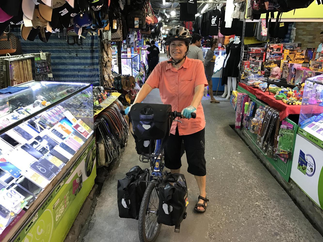It was actually a wonderful tour of the city. Traffic was polite to us, and sometimes so congested we were traveling faster than the taxis and trucks. They let us slip into the right-turn lanes, they gave us a wide berth. We saw places and types of neighborhoods we never would have seen on our own. And after riding in Hanoi we were both calm and confident we could handle Bangkok’s road conditions so we were pleasantly surprised when we entered Mo Chit bus station. And very proud of ourselves. And grateful to Pocket Earth, bravo and well done.