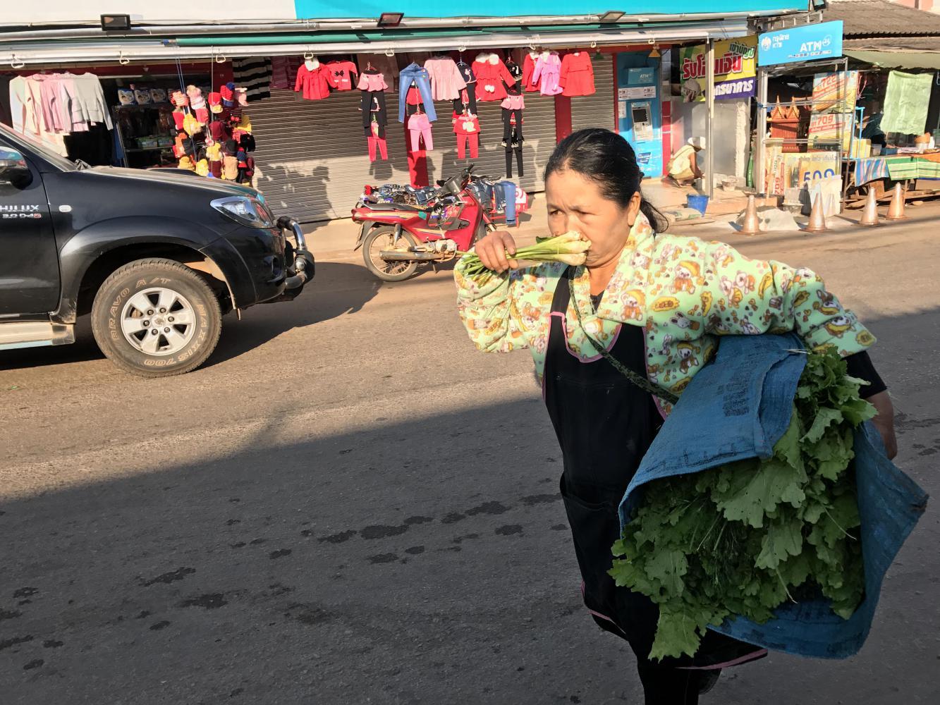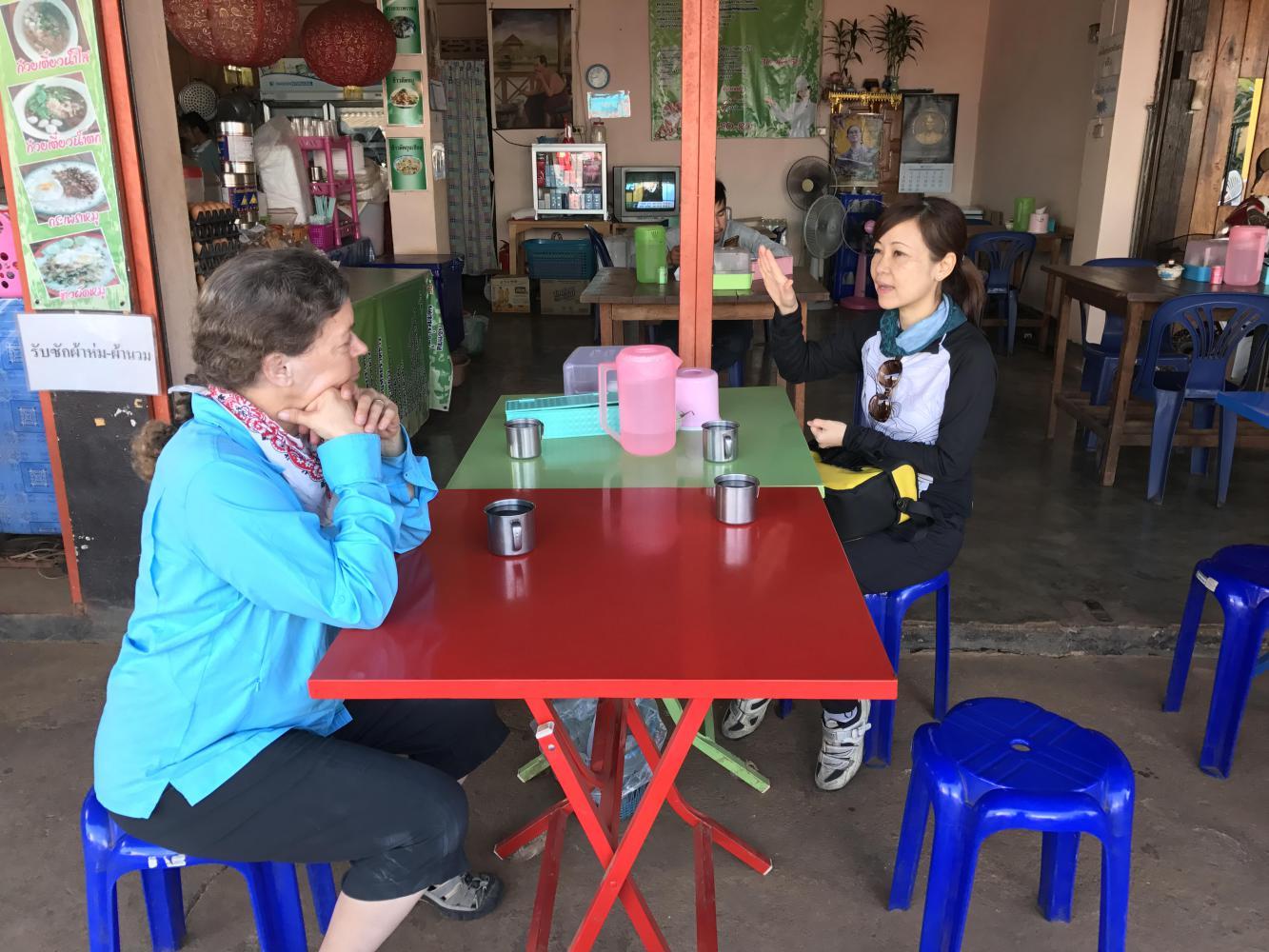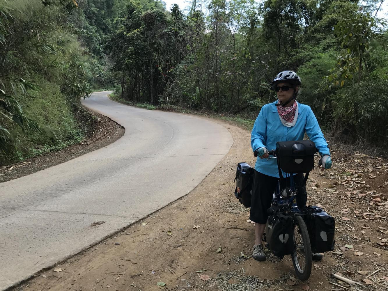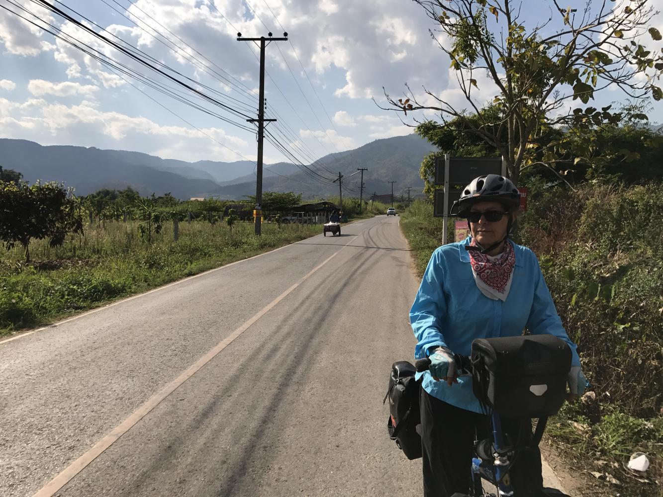 We caught up with Coleen and Chris at the crossroads where we would part ways. Lots of construction of buildings was going on at that crossroads. Thai tourists were lounging in restaurants and there was a general festive atmosphere. We said our good byes and each went our ways.