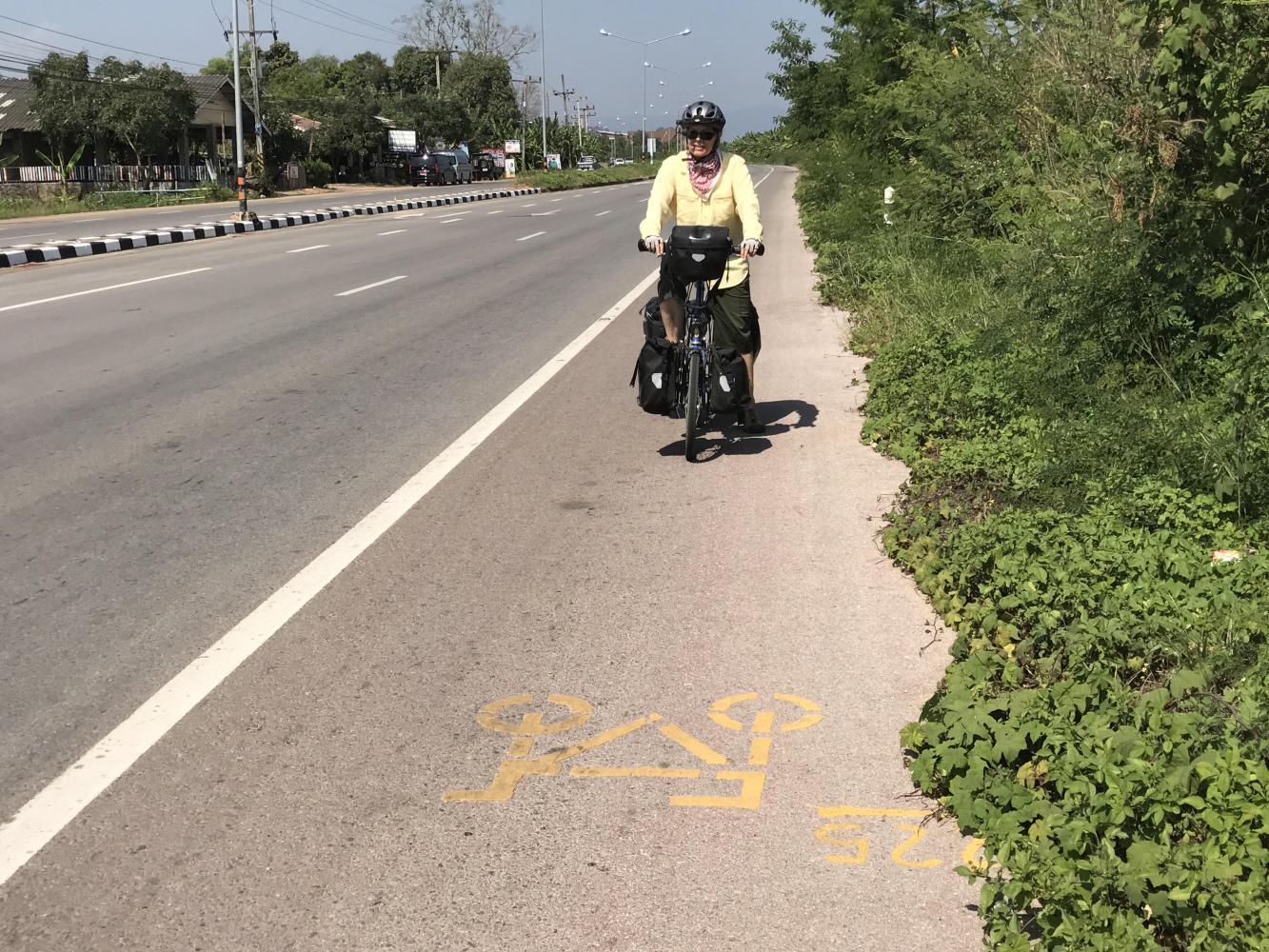 In music, a repetitive theme is called a rondo. You hear a phrase, and start to recognize it later in the piece, you look forward to it and wonder what the next iteration will sound like. We have had few rondos so far on this trip, most days we have ridden on roads new to us. Today was going to be a repeat of our first day in Thailand two years ago after leaving Myanmar from Tachileik to Mae Sai. That was a day very vivid in our minds, the first bike touring we had ever done on a smooth road surface with a wide shoulder and little traffic, the day we knew we really were hooked on this mode of travel.