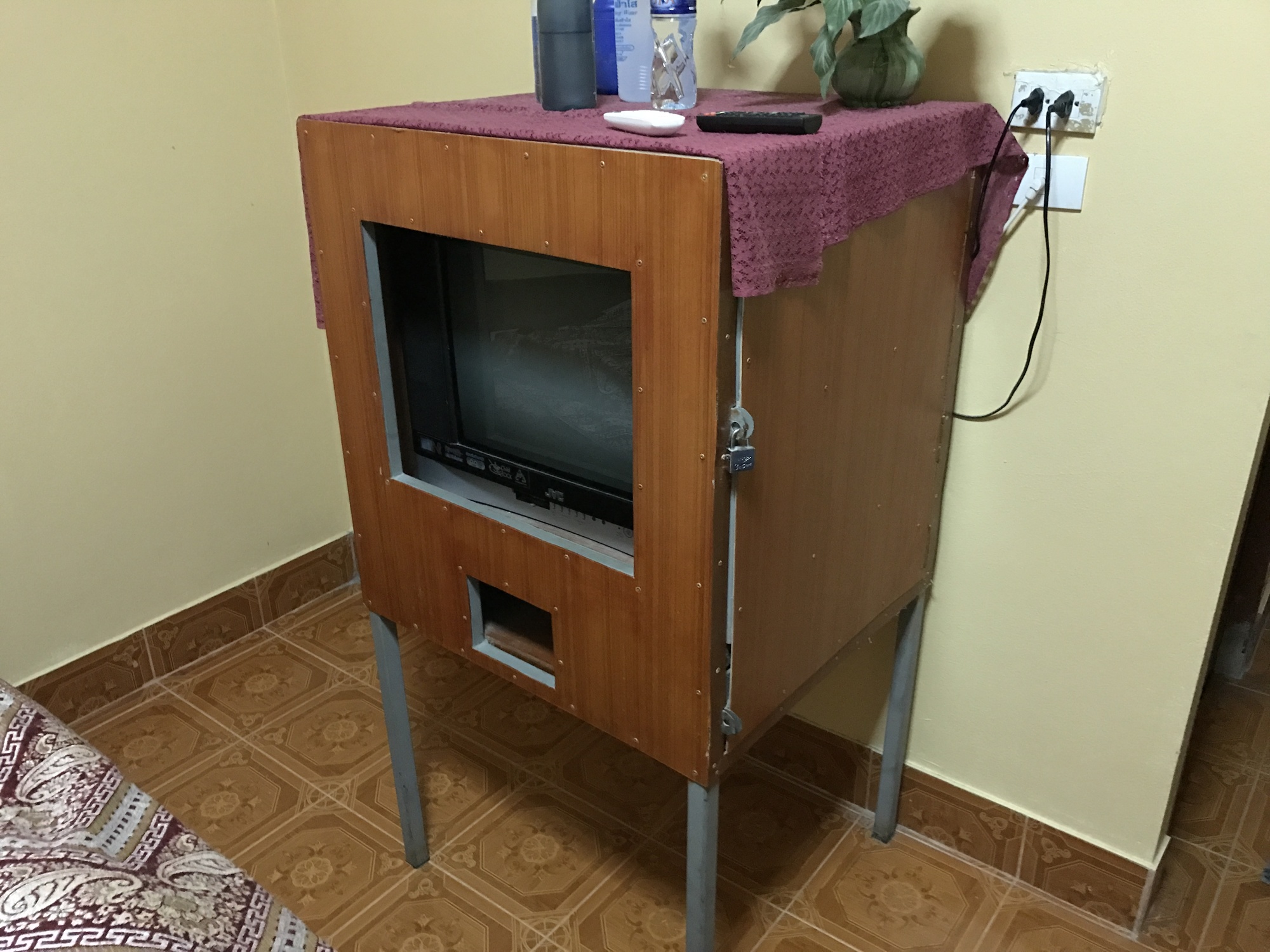 The last few miles to Phaya Mengrai started getting a little hilly which was an insult to two people who spent the last two weeks lolling around Chiang Khong but we managed to find the guesthouse I had scoped out on the edge of town. This was a classic “love hotel” but quite nice. The proprietors tactfully put a signboard in the driveway where ordinarily the lovebirds’ pickup truck would park, in order to keep others away. There was a romantic shell curtain in the door, and a working tv that only seemed to have “king channels”. Ceremonies were beginning in Bangkok in anticipation of the cremation in October and there is much coverage of those on every station.