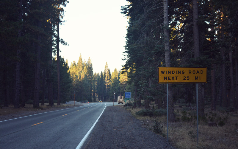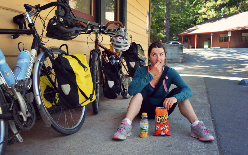 On the back side of the climb we head down at a five percent grade, which is the perfect downhill angle because it lets us coast at a steady twenty-five miles per hour without using the brakes, even as the road swings left and right with the curves of a creek. That's what the pattern for most of the afternoon that follows looks like: go up five-hundred feet, drop almost a thousand, then climb back up five-hundred again. But with traffic calm and controlled, and strong motivation to reach Chico, we crawl up the hills like it's our job and savor every mile of effortless downhill.