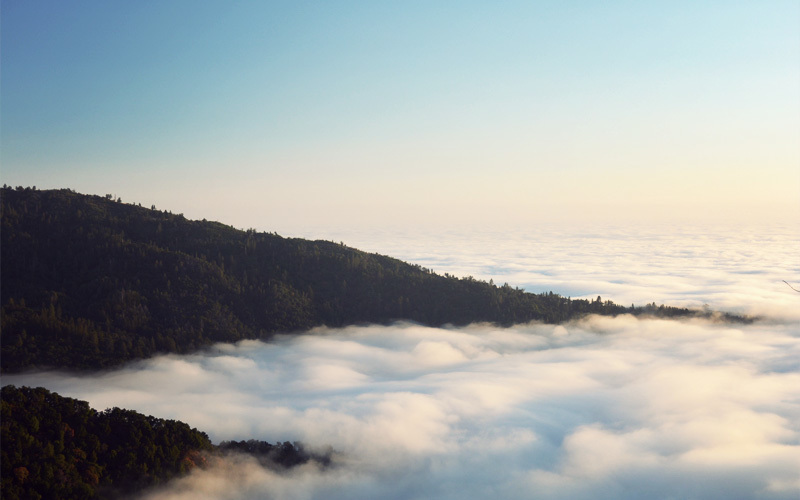 And then we're there, at the crest of the climb. Down to the left we see clouds stretch without end to the horizon, and we know that below them lies the ocean.