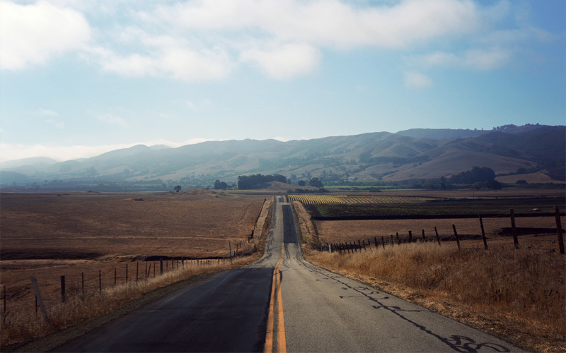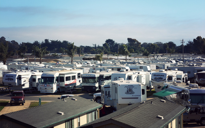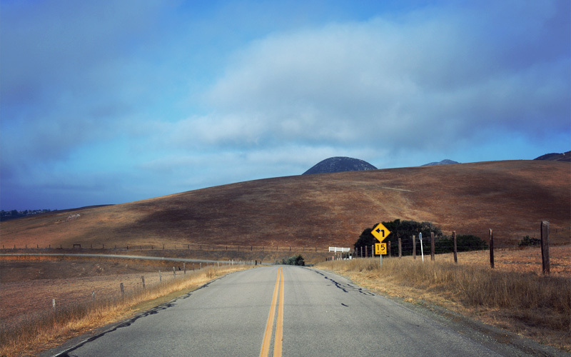 When we crest a rise we see it again, the Pacific Ocean, blue and calm and endless. But soon it's washed from view by the long rows of homes that cling to the ridges above Pismo Beach, the outlet stores and strip malls that stalk the 101 freeway, and the semi-permanent RV communities so full of motorhomes that the reflection off all the fiberglass is near-blinding. Just so it's clear: I get it. The climate here is perfect all through the year, the views along the coast are spectacular, and there's something about living among palm trees that somehow feels good. As Americans we are pre-programmed to love all of these things, so it doesn't surprise me that the cities are the way they are here. But the result is that unless you're in a vehicle it so often feels like a beige-colored disaster.