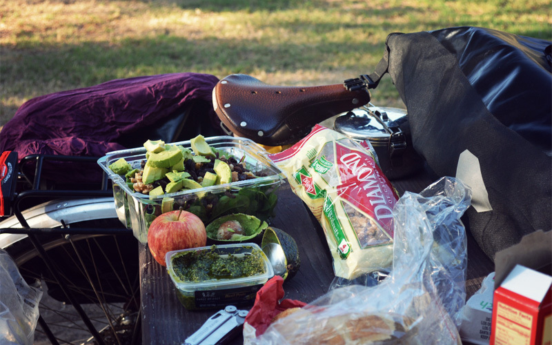 When there's a break in the traffic noise it's filled with the double beep of the door buzzer at the mini-mart across the street that sounds whenever someone enters or exits. Later in the evening, a few Amtrak trains roll by on the railroad line that runs maybe fifty yards beyond our feet. And we make sure to lock our bikes to the picnic table, because Oceano doesn't exactly give off that friendly small town feeling.