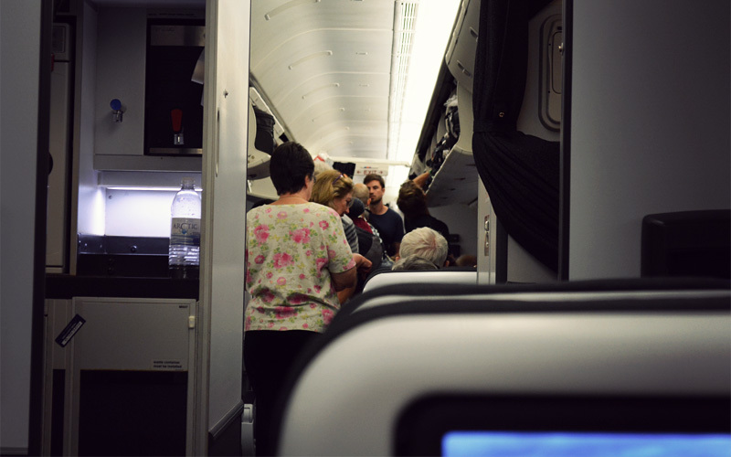 We stand around among a bunch of people at the security checkpoint, then stand around among a bunch of people in the terminal before boarding a bus where we stand around among a bunch of people while we travel what seems like several miles across LAX until we reach a standalone gate. That's where we stand around among a bunch of people on a jetway before walking down the aisle of the plane, where we stand around among a bunch of people cramming bags into the overhead compartment. Most days this is the kind of modestly annoying stuff that you tell your friends about after you land while they pretend to be interested but really wish you'd just stop talking already. But today it's somehow exciting and sends us to keep looking over and giving each other these weird half-smiles, because today we're on our way to New Zealand and we can't think of a single thing in the world better than that.