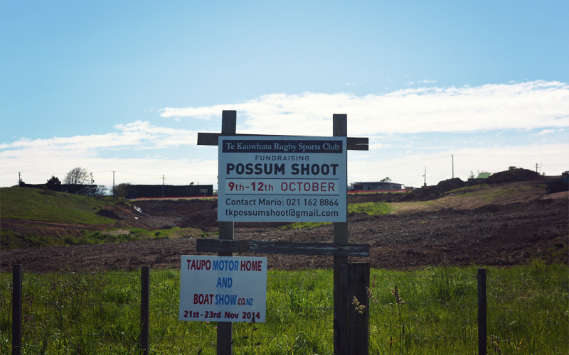 With tired legs and empty stomachs we reach Morrinsville, where we head to a Thai restaurant to recharge. The food is good, but as seems to be the case all over this country, it's very expensive in relation to what we get. Following dinner we ride to the edge of town, where we read that camping might be available. What we find is no more than a paved turnaround with a dump station where RVs passing through town can park for the night. And so, with darkness falling, and knowing that the town is surrounded by farms in all directions, we roll the bikes over to the edge of the nearby rugby pitch, set up the tent, and dive in. On the heels of a long day we fall asleep in no time at all, to the sounds of passing cars, downshifting semi trucks, revving motorcycles, and the dogs that bark in concern at all of them.