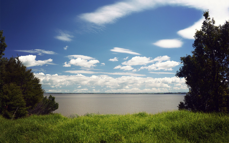 Besides a one-mile run along Highway 1 — which is as clogged with traffic as you'd expect from the country's main motorway on a Saturday — we spend our time on quiet back roads where neither the farms nor the beauty of the countryside fade, not even for a moment. And contrary to what we heard over and over and over again in Auckland, we find the drivers here in New Zealand to be no worse than those you'd find in the rural U.S. Even though we ride most of the time on shoulderless roads, not a single car passes any closer than they should, and most swing well out into the other lane as they fly by. That means we're able to travel the rises and falls of the road along the east side of Lake Waikere more or less alone, with the smell of burning wood piles in the air and the rumbling sound of hooves in our ears as the sheep charge away from the fence line when we pedal past.