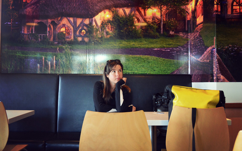 "Headed to Hobbiton are ya?" she calls out as we roll by.