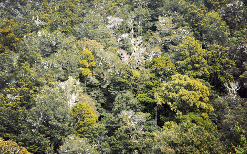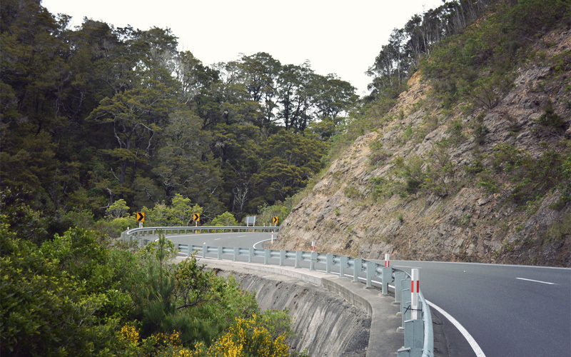 New Zealand is also trying to make sure we're in top physical shape when we finally reach all of this mind-blowing stuff. The second half of the day fills with hills steeper than anything we've encountered in the last couple of weeks. Our legs turn sore and our lungs ache from the effort. Big trucks and old vans and out of tune cars struggle and strain right along with us, leaving in their wake clouds of blue-gray smoke. But the farther we climb the more wonderful the scenery becomes, because we lose the clear cuts and the mountains covered with identical trees, and instead we're surrounded again by native trees and plants and all of the peace and stillness and birdsong that go along with them.