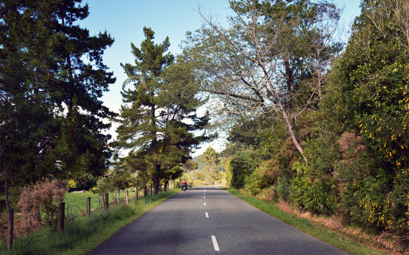 In the end, the morning is spectacular. It's cold enough that we can just see our breath, but the clouds are thin and high and the sun warm and bright. We quickly make our way out of town, cross over a river, and then ride alongside small homes, country schools, fields of apples and kiwis and hops, and little kids who say hi and wave and grin at each of us from the seats of their strollers as we pass by. Because we expected the worst and instead find the best, we pedal with our heads up and smiles on our faces and look forward to a wonderful morning in New Zealand.