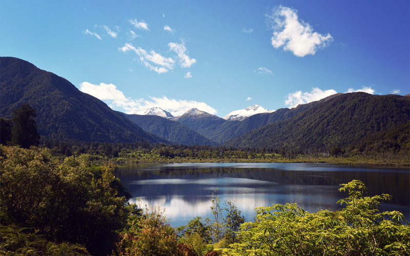 Instead we're on the edge of giddiness all morning, because it all feels like some kind of hard-earned reward. We ride for long stretches alone, which gives us the chance to examine all of the wrinkles and folds of the hills, to look down through glacier-fed water and figure out all of the different colors of rocks that lie at the bottom of the riverbeds, and to watch the pair of black swans that have the entirety of Lake Moeraki to themselves. It's also the perfect weather for walking down a short trail off the highway, dropping your shorts, and taking a dump in the bushes. You know, if you're in to that kind of thing.