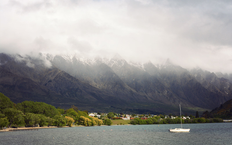 We crank out slow miles toward Queenstown on rough cycle paths. A line of snow-capped mountains so remarkable that they're actually called The Remarkables look down on us from just below the cloud line, but we're so beaten down by the cold and the wind and the rain that it's hard to give them more than passing looks. It feels like a nasty winter's day in the Northwest, yet we're only five weeks away from the first day of the New Zealand summer, which somehow makes the dreariness that surrounds us seem that much worse. It also turns the end of the day into a death march where hunger and dehydration and fatigue bear down on us with greater force the farther we go. Yet we seem to be the only ones surprised by this, because we pass half a dozen couples walking hand in gloved hand, all of whom wear the kind of parkas most people reserve for blizzards.