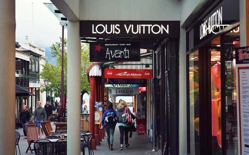Reaching Queenstown provides a certain feeling of relief, but the place manages to cancel most of that out by presenting us with a long line of chain stores like Starbucks, KFC, Pita Pit, and Sunglass Hut, the kinds of things we haven't seen since we jumped a train out of Auckland. They're complemented by the thumping bass that echoes out of sketchy bars, the hiss of tour bus brakes, the packs of semi-drunk dudes who roll six or seven deep, the Louis Vuitton store, and the kind of shops that exist for the sole purpose of selling tourists thirty-dollar teddy bears, eighty-dollar jars of honey, and roughly 800 kinds of skin cream, all of which they could just as easily buy at home. It's a sudden, harsh, eye-rolling reminder of the kind of lifestyle we gave up on forever when we cycled away from Portland back in August.