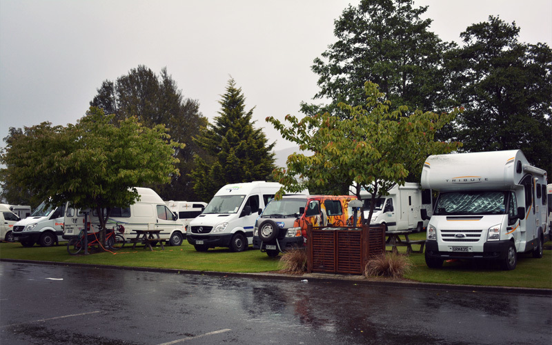 After making her breakfast and tea, Kristen sits in the lounge area next to the reception desk at the disappointing holiday park in which we've grabbed a room for two nights. As she eats her oatmeal, she watches a series of people scramble around the parking lot outside as they make their way toward the tour buses that leave town at 8 a.m., headed toward expensive sightseeing cruises and inane shopping in Milford Sound, about seventy miles north from Te Anau.