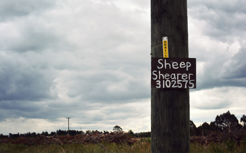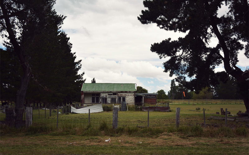 The pounding hooves of five or six horses pulling chariots piloted by retired drivers shake the ground alongside the trail as we push the bikes out of the woods and the underbrush and retrace our path back to the highway. Our gears and chains and brakes grind and hiss with the grit of left-behind trail dirt as we make our way toward Rangiora on a road heavy with Monday traffic. The road takes us past horse pastures, small farms, and modest homes that all have their garbage cans sitting out front in the gravel next to the pavement. If the Christchurch area keeps expanding outward, and the small but growing towns out here continue to do the same, it's the sort of countryside that forty or fifty years from now will be covered in an unbroken mass of tract houses, grocery stores, and strip malls. The agriculture operates at a small enough scale that by then the land itself will hold greater value than what it's capable of producing.