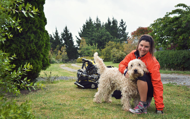 After inadvertently swearing at high volume in front of an eighty-year-old woman as I load up my panniers with chocolate bars and cookies, we prepare to leave town and head toward the small goat farm where we'll be volunteering. Standing in front of the grocery store, out of the wind and in the sun, the day feels warm enough that I almost start to sweat because I'm wearing my rain jacket. But three minutes later when we're a few blocks down the road, the clouds have blocked out the sun and the day has turned so cold that I have to stop to zip my jacket all the way up and put on gloves. A few miles farther on rain starts to fall, light at first but soon in a downpour. It's the first day of December, exactly three weeks from the start of summer here, and yet we feel like we're riding through the middle of what could pass for a mild winter's day almost anywhere in the United States.