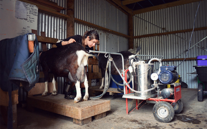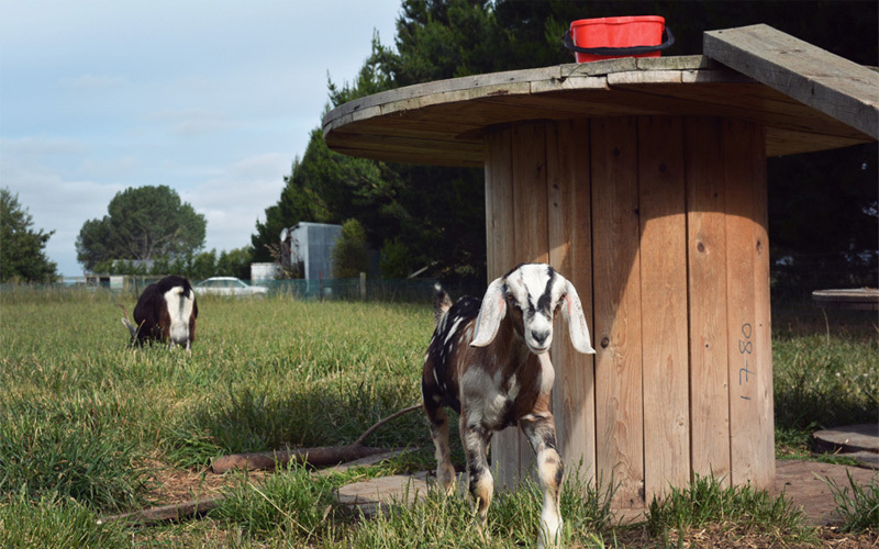 The instruction continues on Sunday evening, when we go with Sarah as she heads out to a pair of goat breeders in the area to pick up two new additions to the herd. At the first farm, the man who's in charge of the breeding picks up the three-month-old goat and places it in the canopy-covered bed of the ute, which has been lined with a fresh layer of straw. Almost at once the kid begins to cry at full volume, calling out to its mother who feeds in the paddock just on the other side of the fence that runs next to the truck. But the mother is focused only on eating the grass three inches in front of her face and refuses to look our way. This leads the little one to scream out over and over and over again, in a way that's heartbreaking on its own merits, but that's all the more difficult to listen to because the tone of its cries make it sound as if it's saying "Mom! Mom! Mom!"